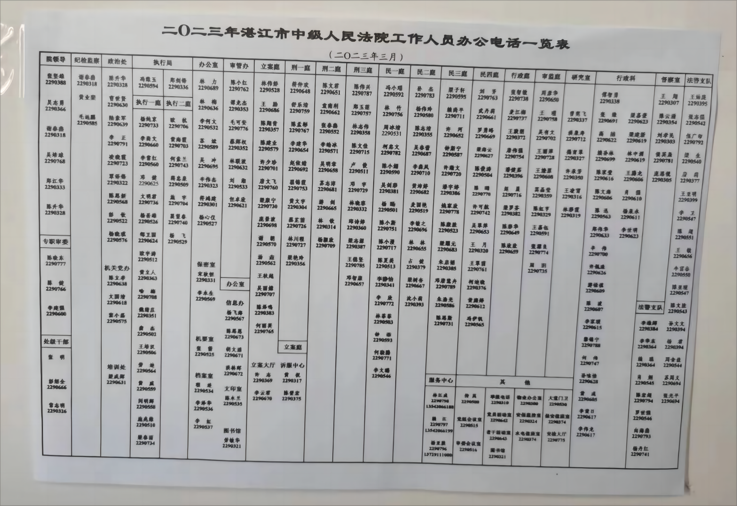 广州市中级人民法院通讯录(2023年) 广州中院通讯录 立案庭(诉讼服务中心) 内勤组 组长 车 莉 83210306 法官助理 刘莹莹 83210285 文 琳 83210322 书记员 林珏玲 83210310 黄清丽 83210292 传真号 83210331 一审立案组 组 长 林 萍 83210311 法官助理 陈丽园 32620129 书记员 冯百行 32620128 龙曙卉 32620127 诉讼服务中心 负责人 朱... 2024年06月05日 办案经验 暂无评论 喜欢 3 阅读全文