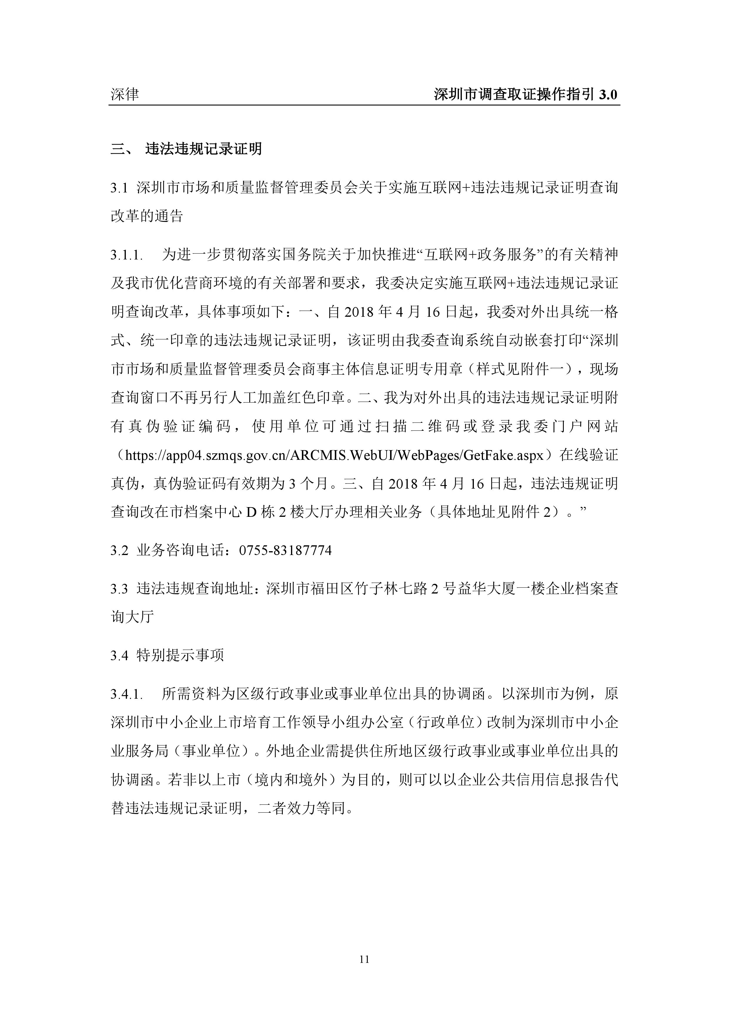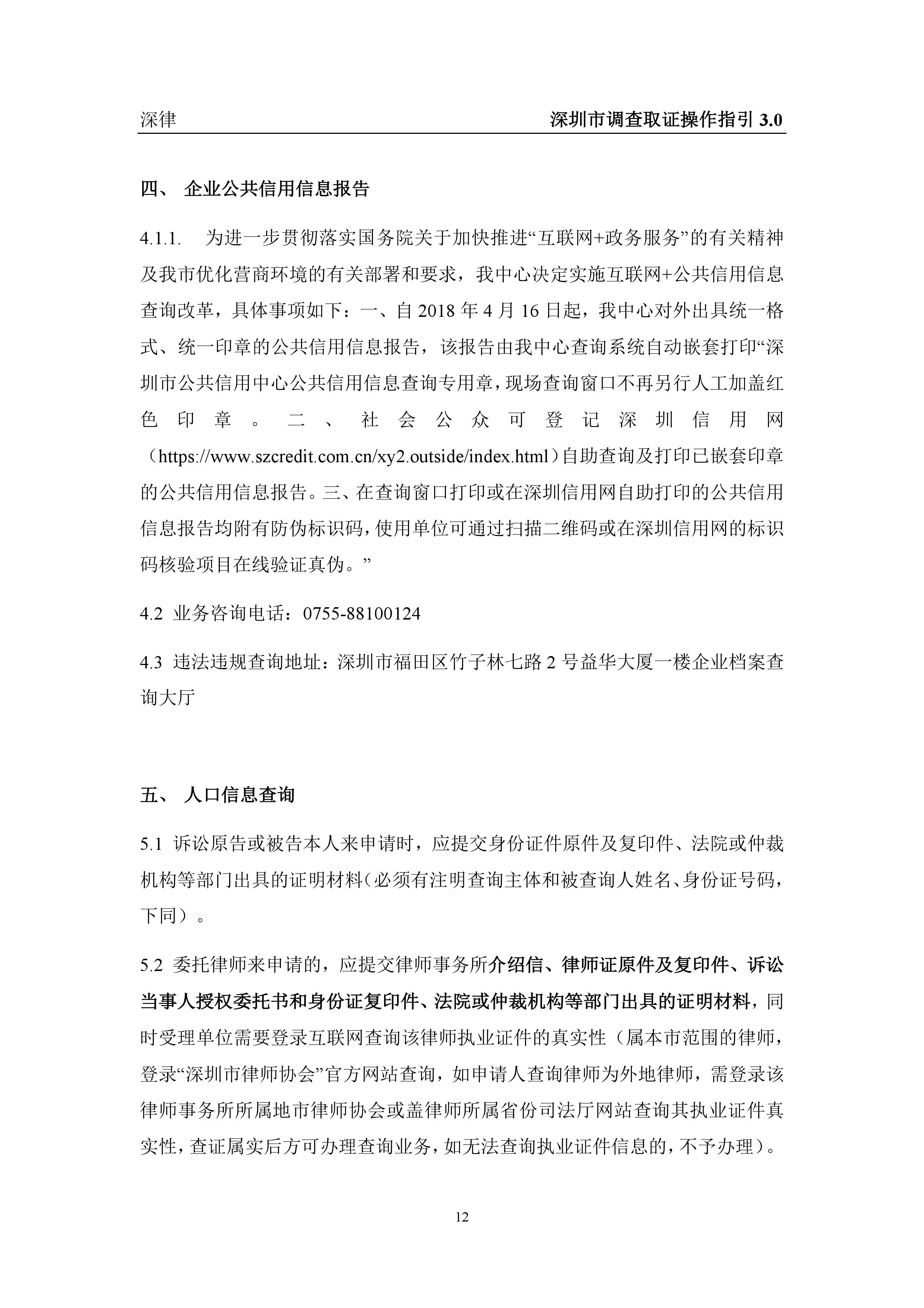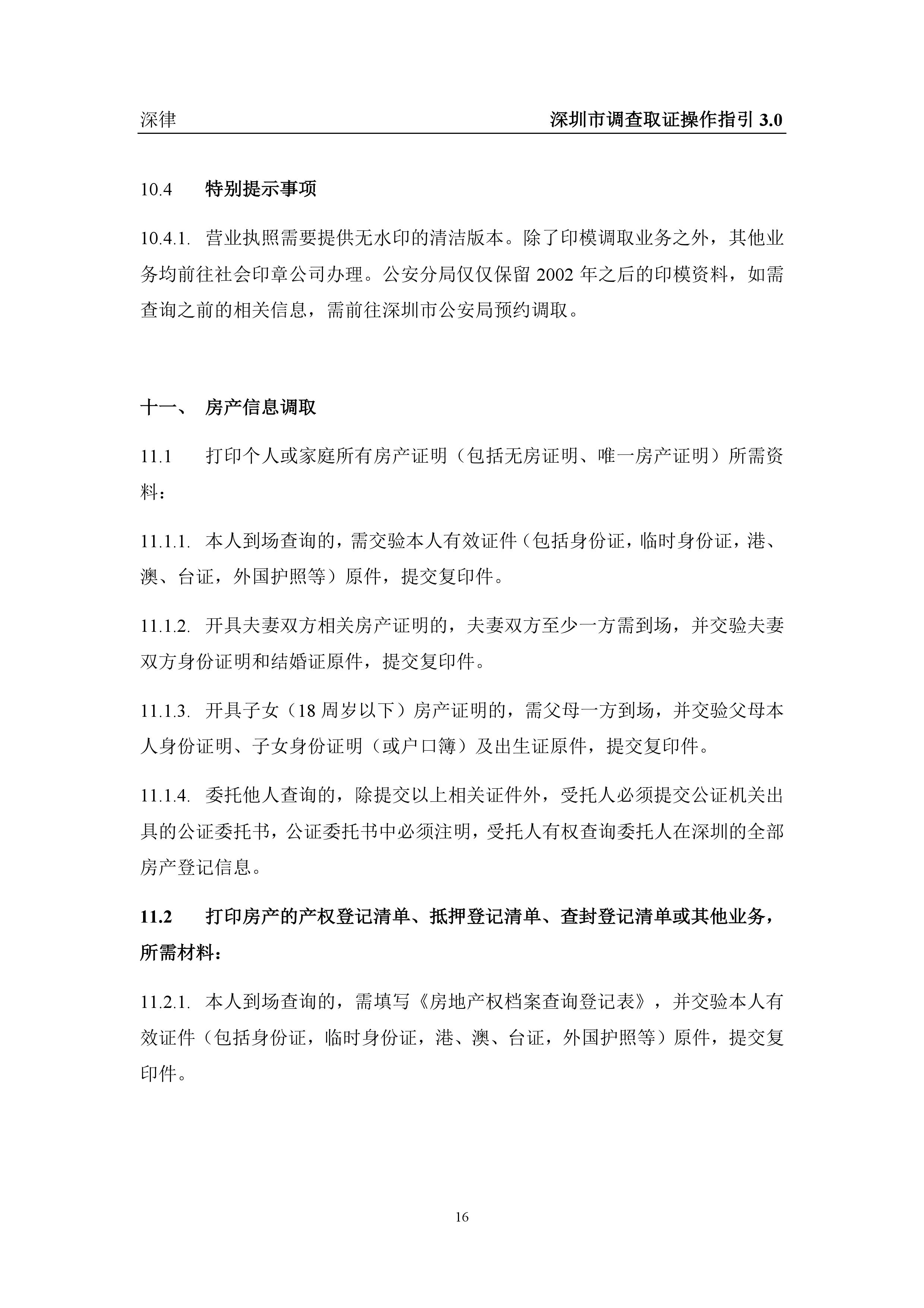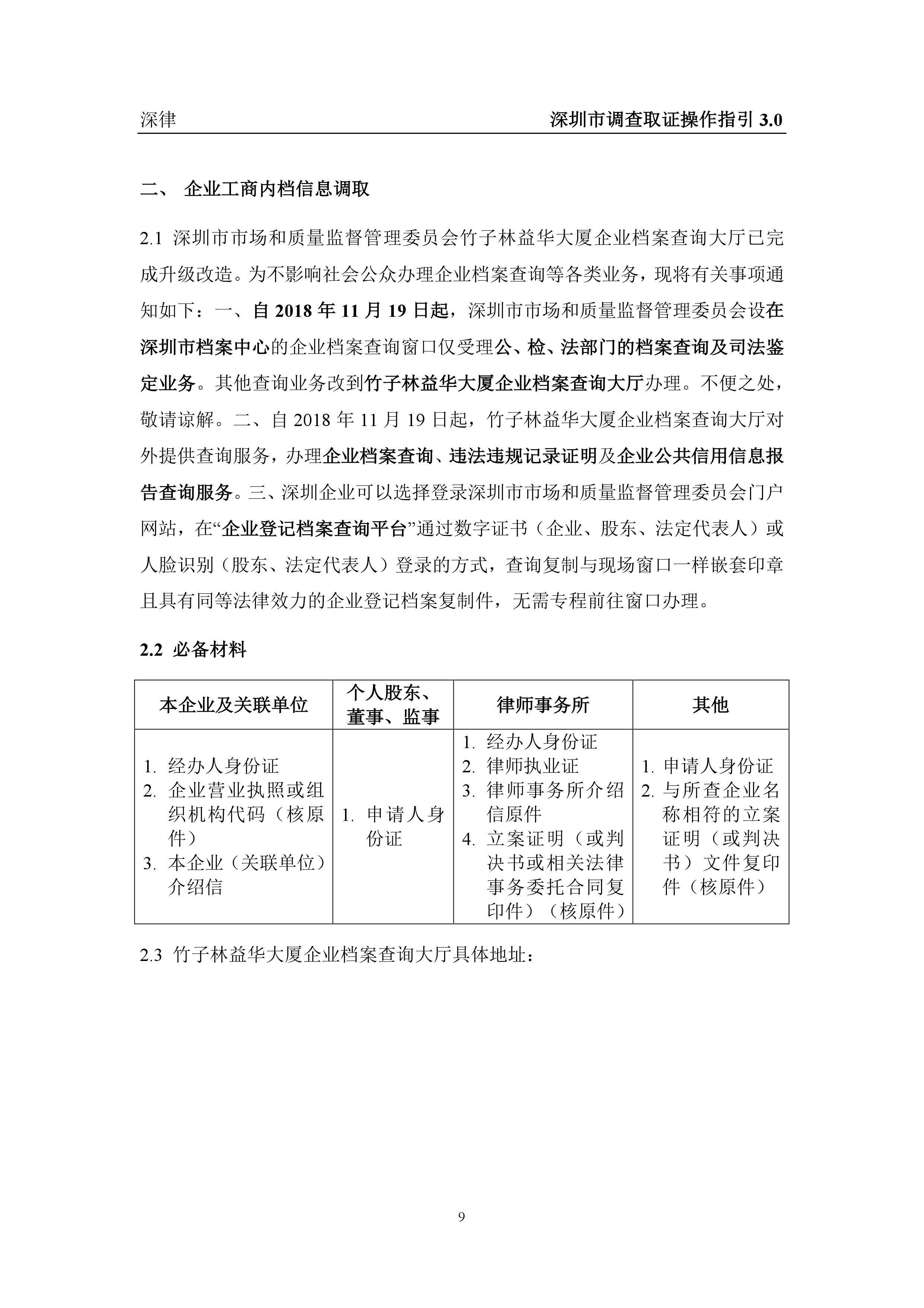 深圳市各类调查取证操作指引汇总(2019.3.1)