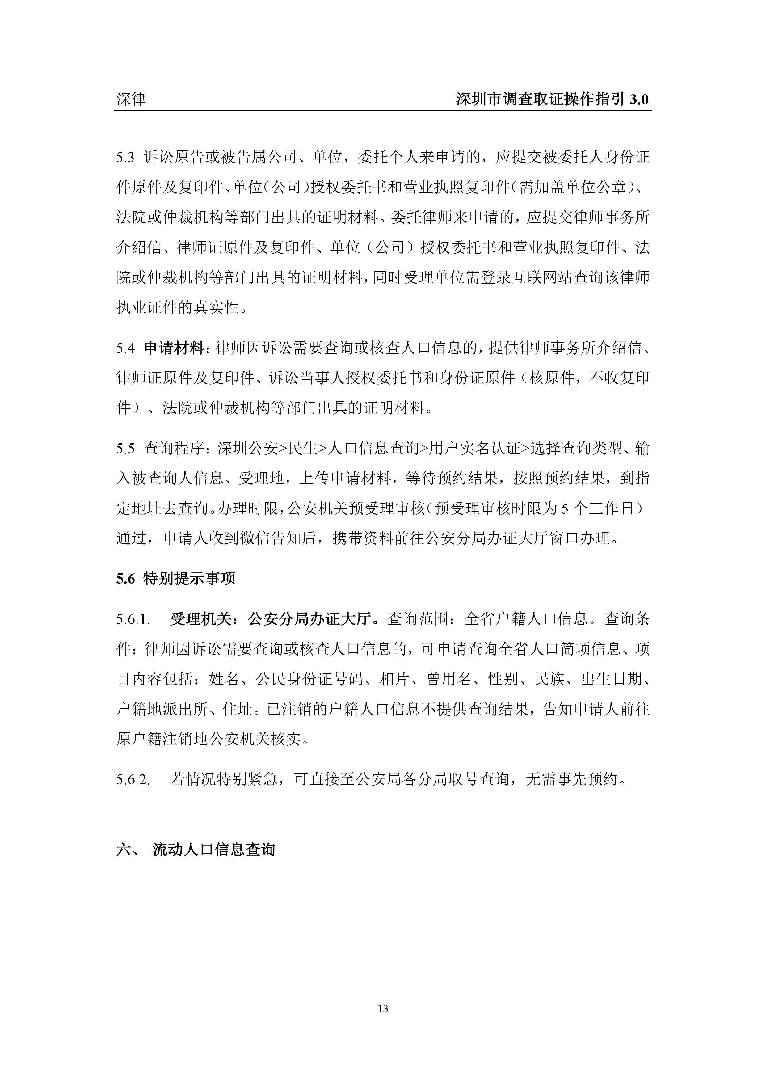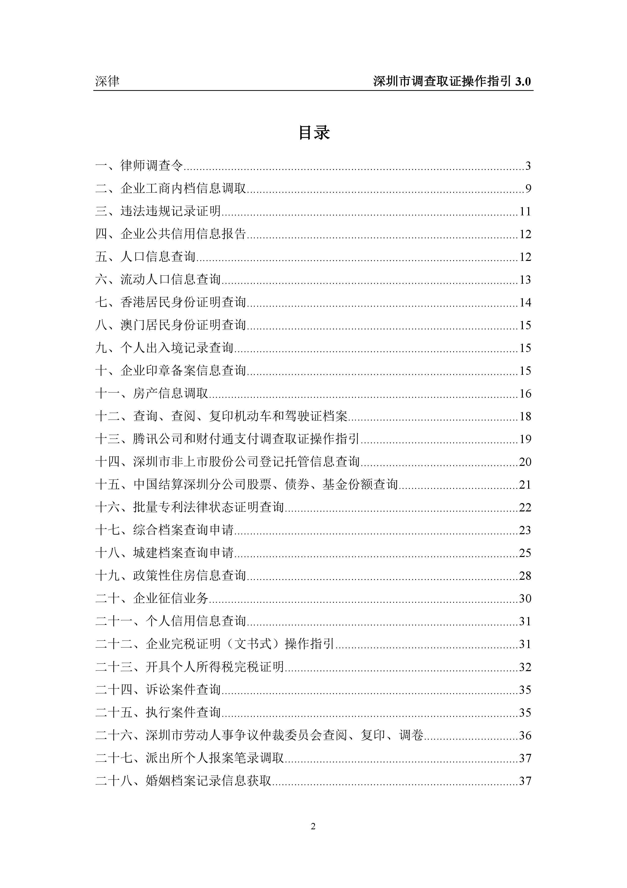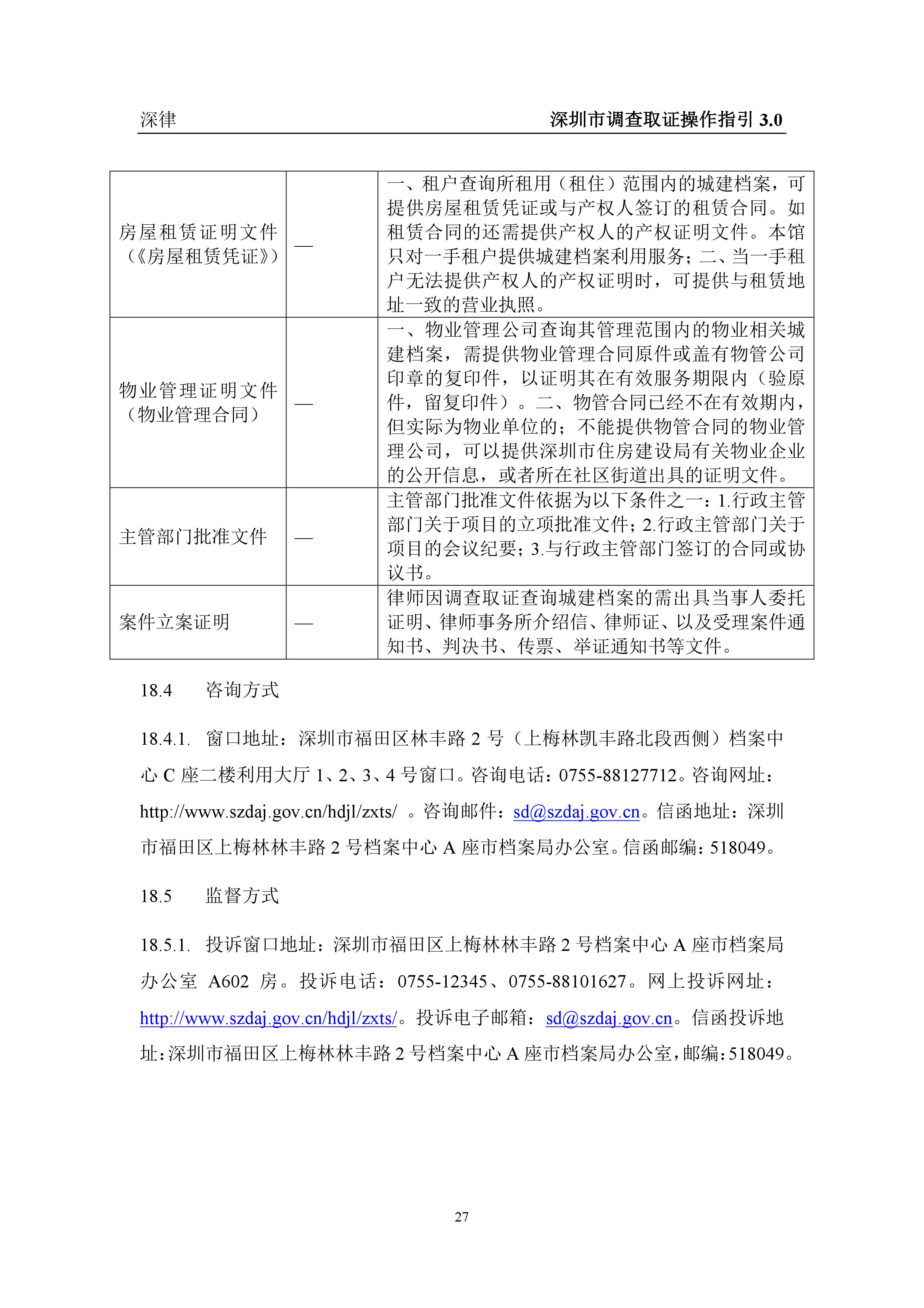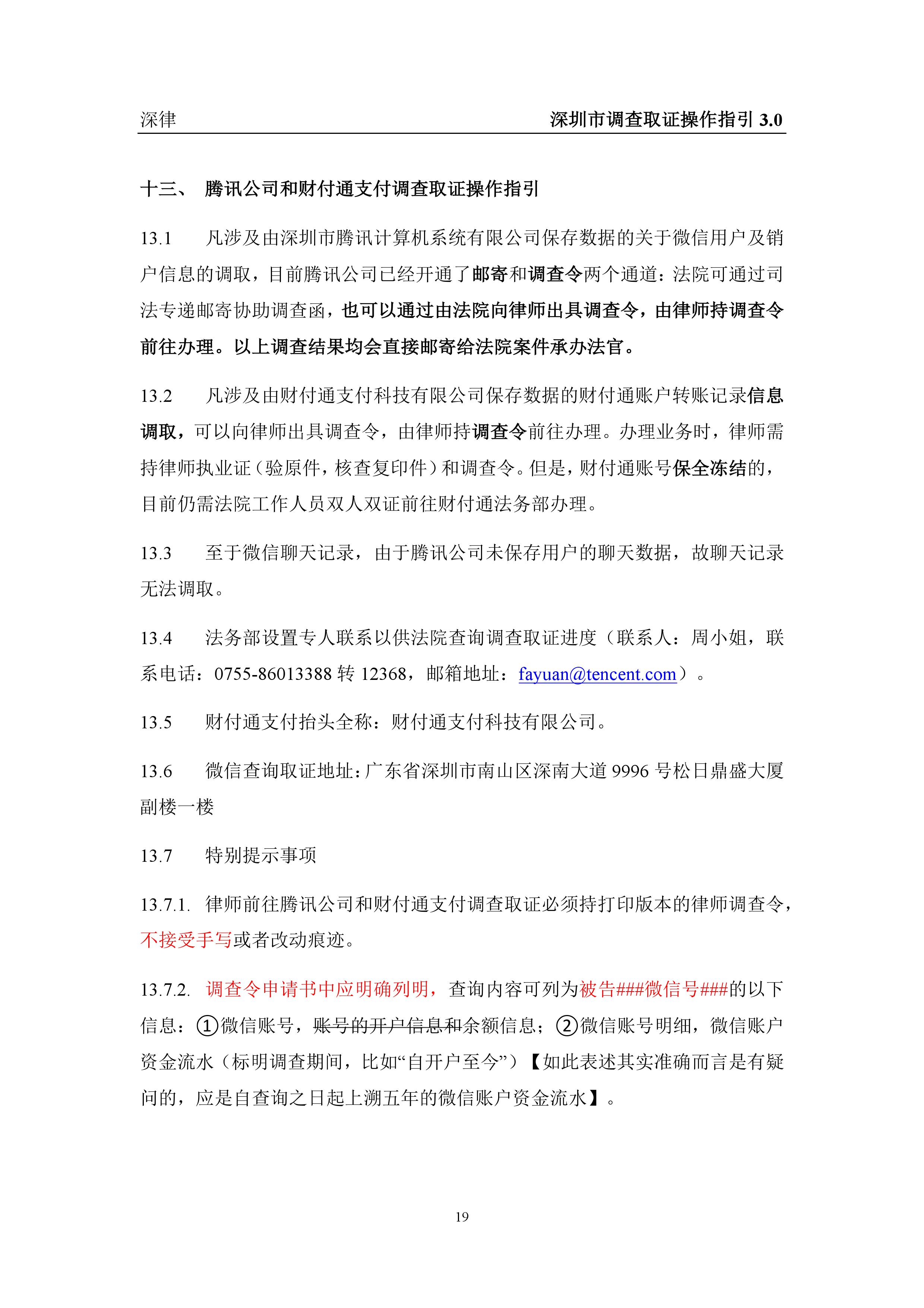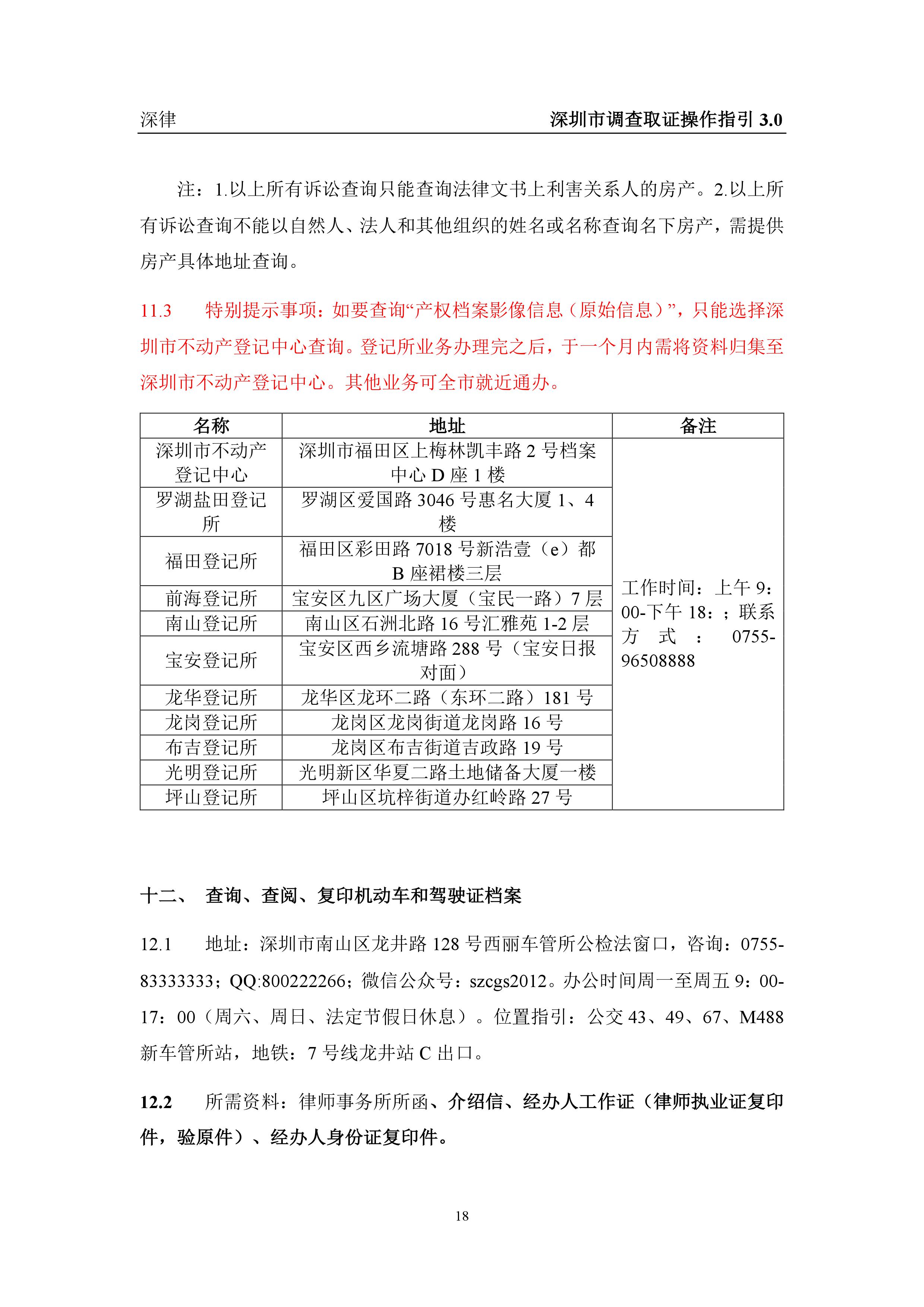 深圳市各类调查取证操作指引汇总(2019.3.1)