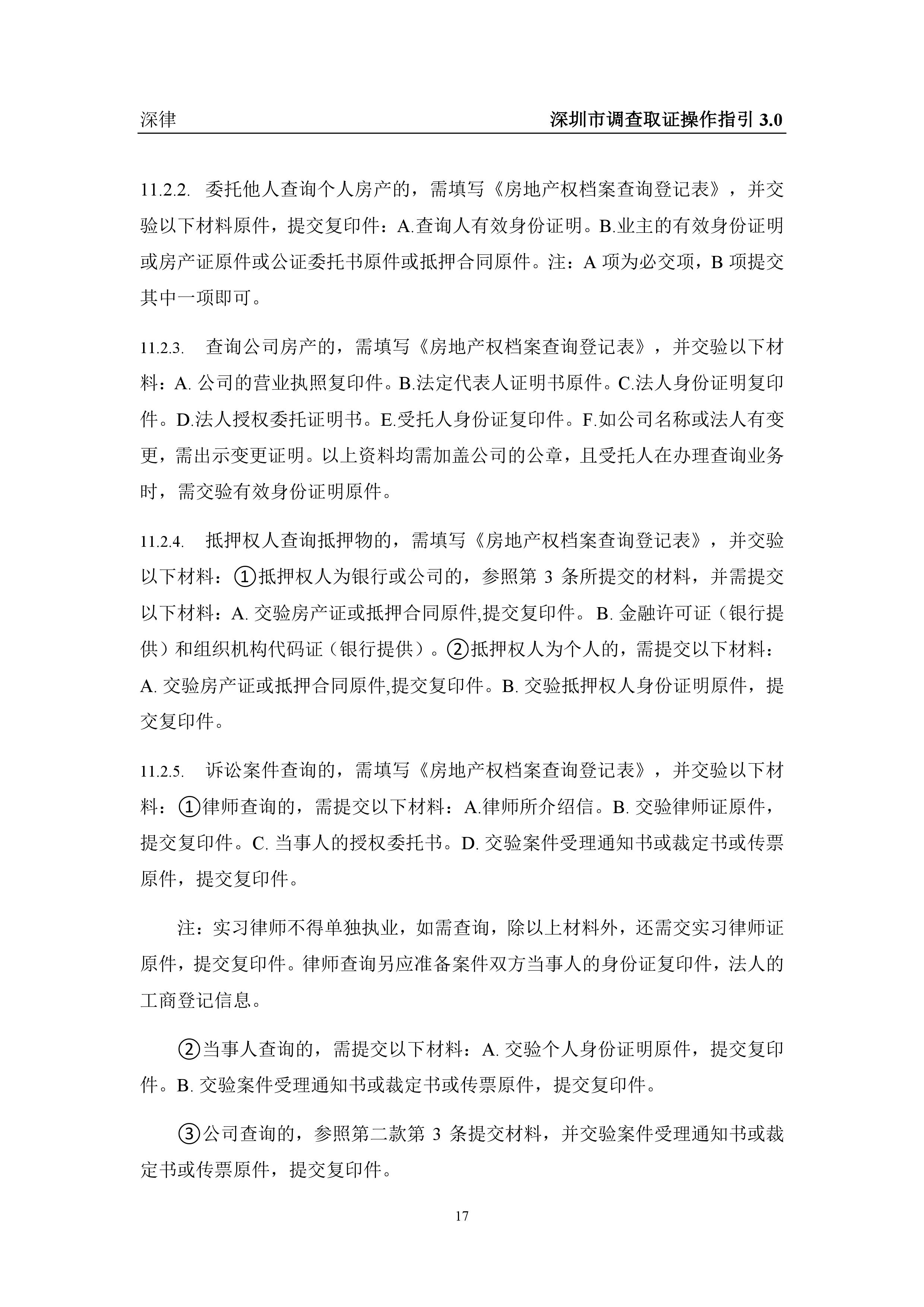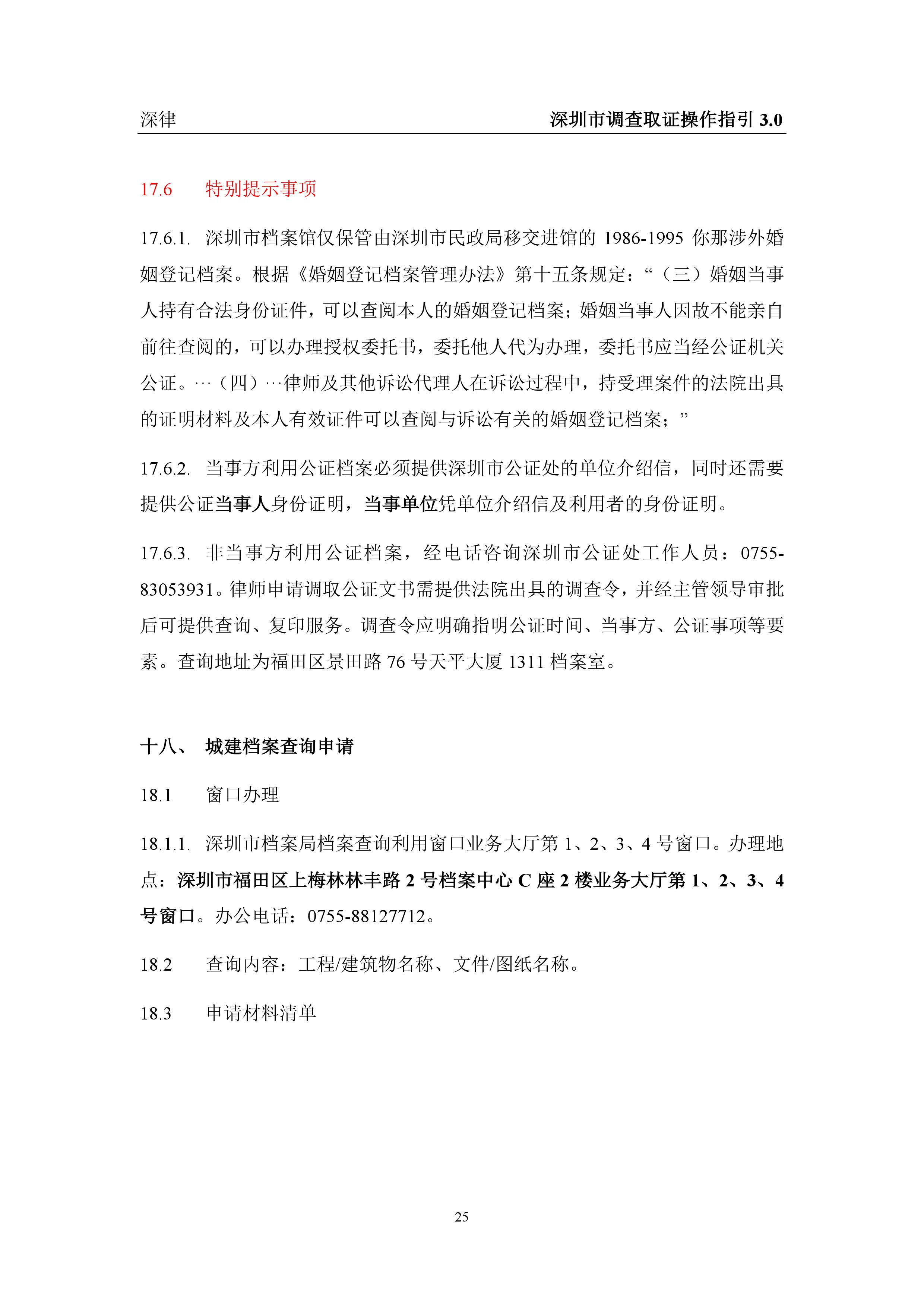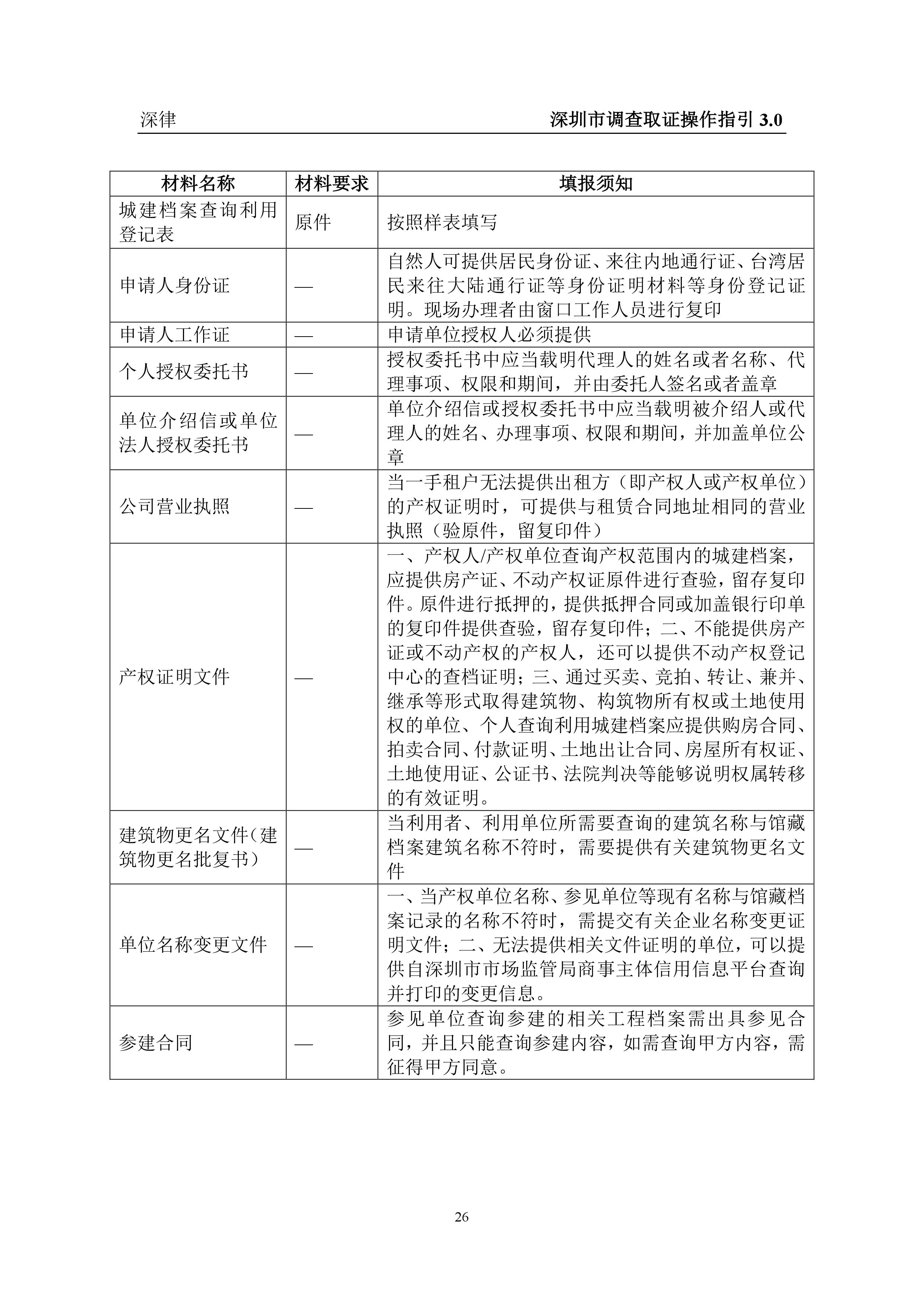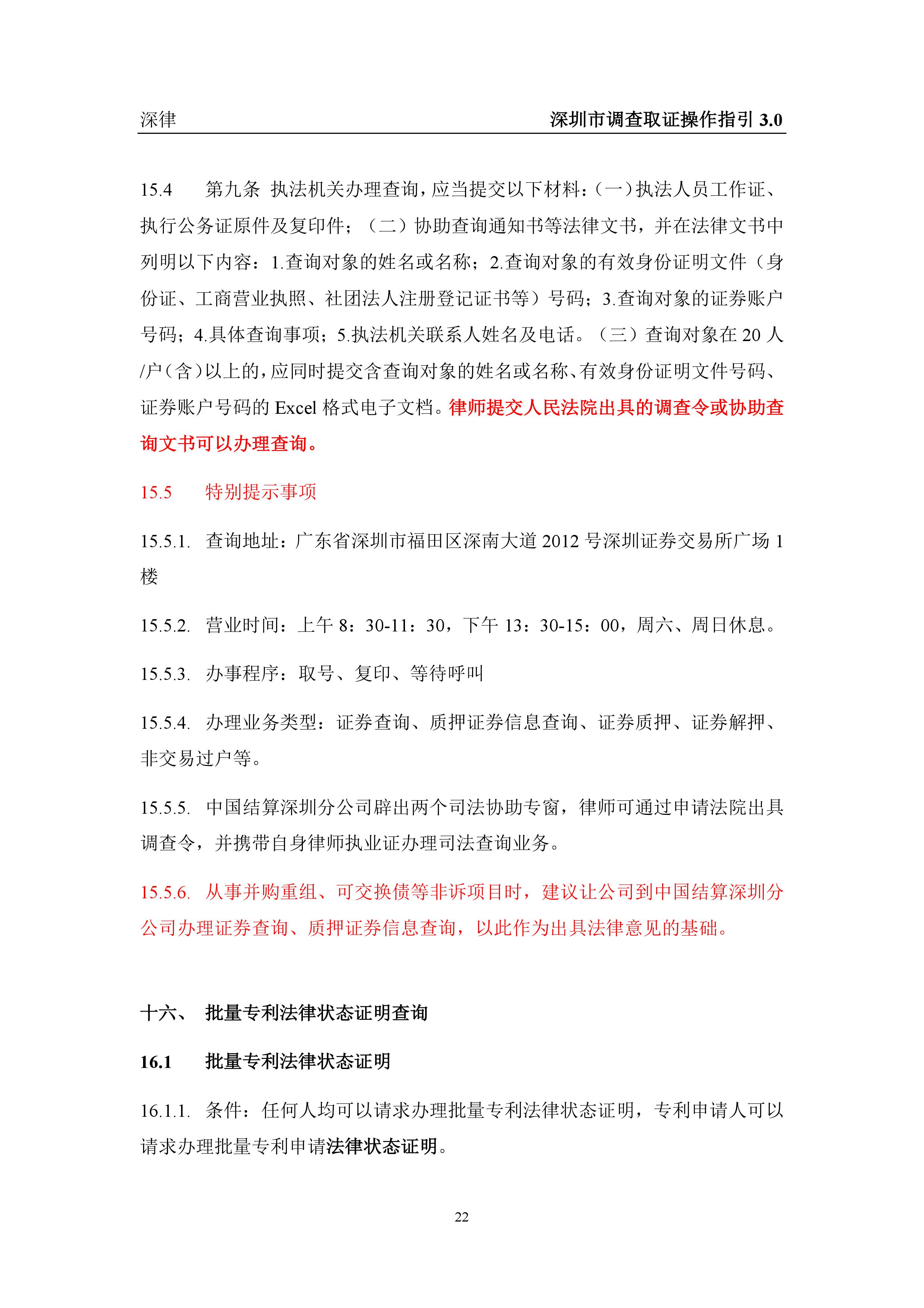 深圳市各类调查取证操作指引汇总(2019.3.1)