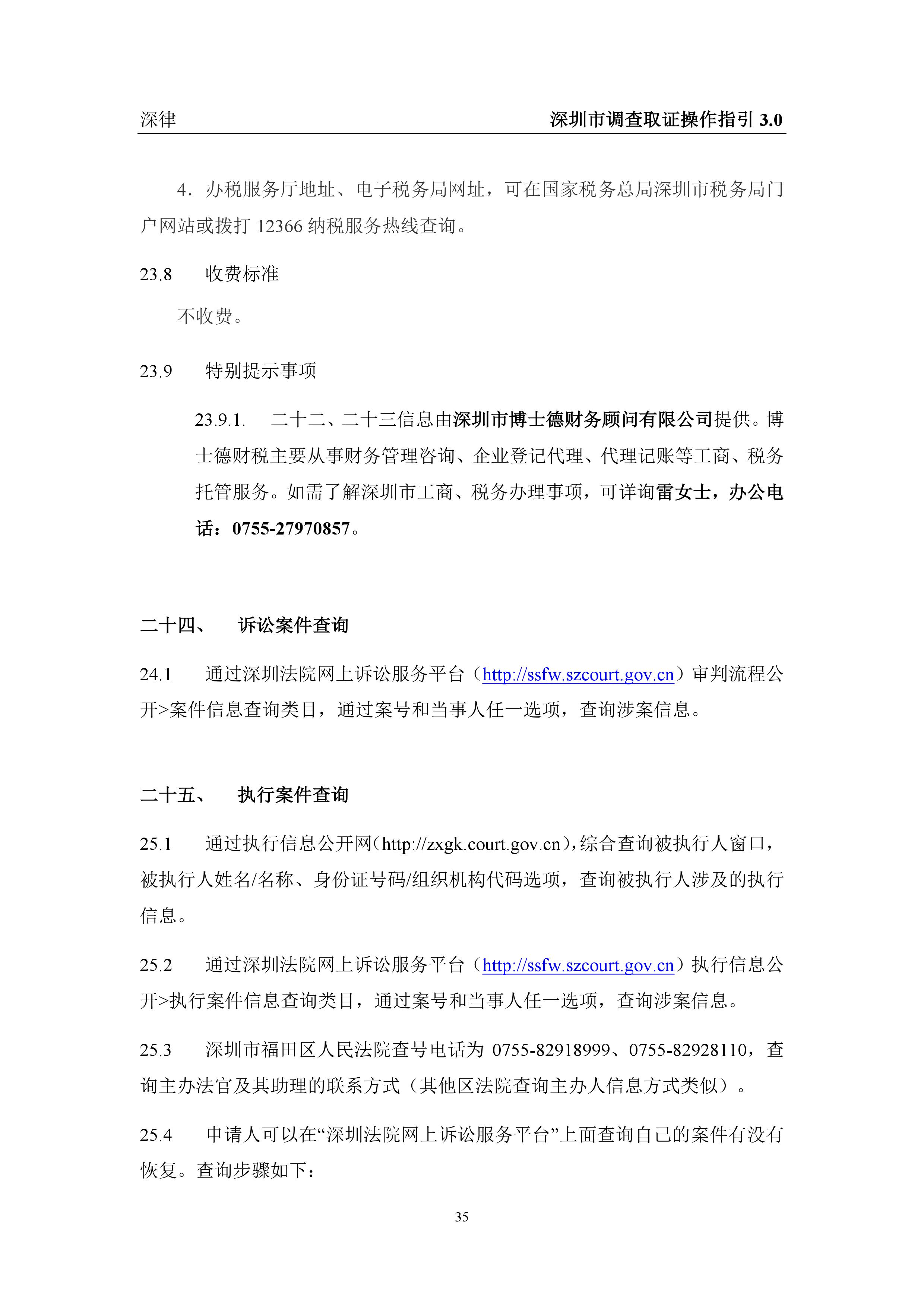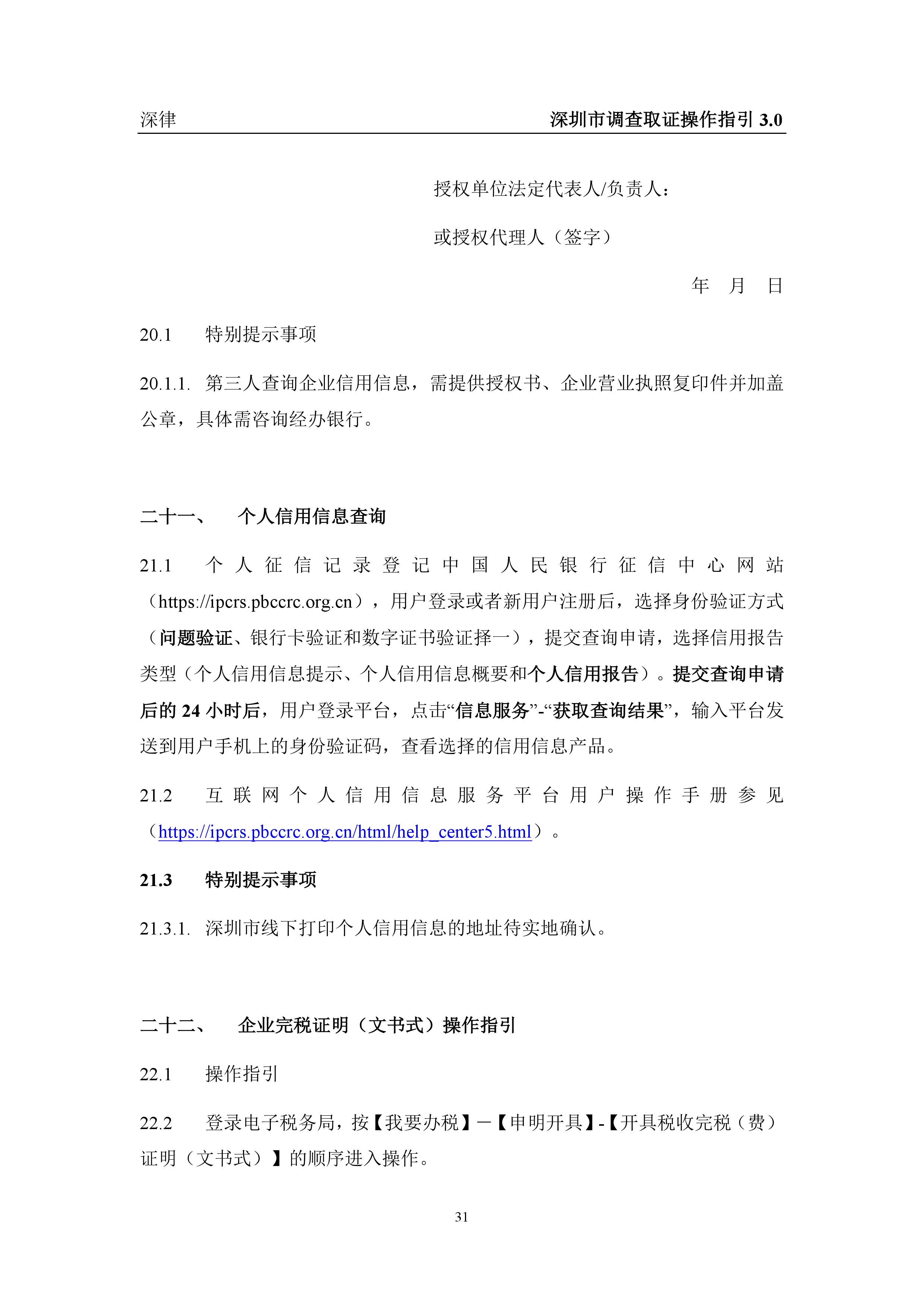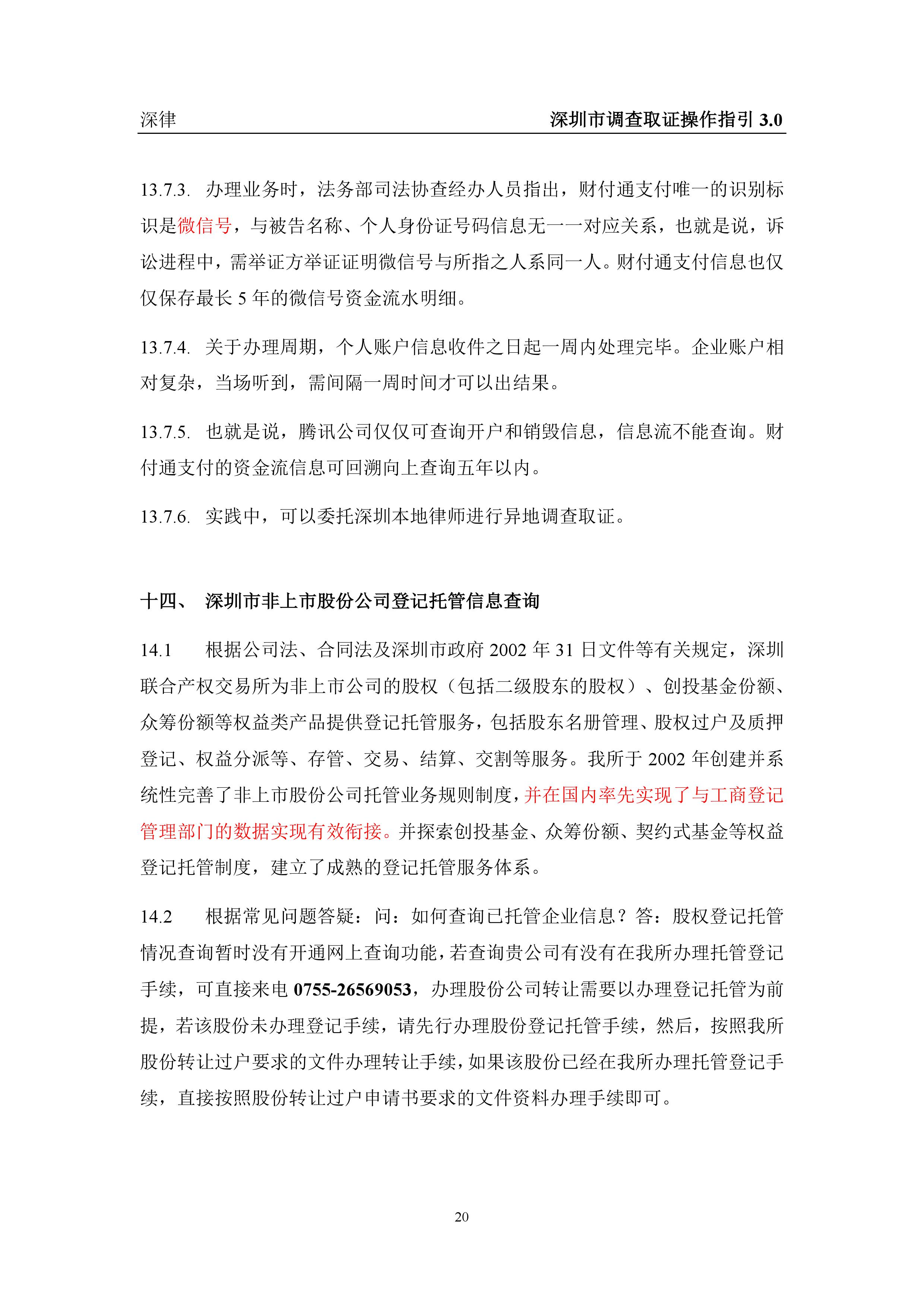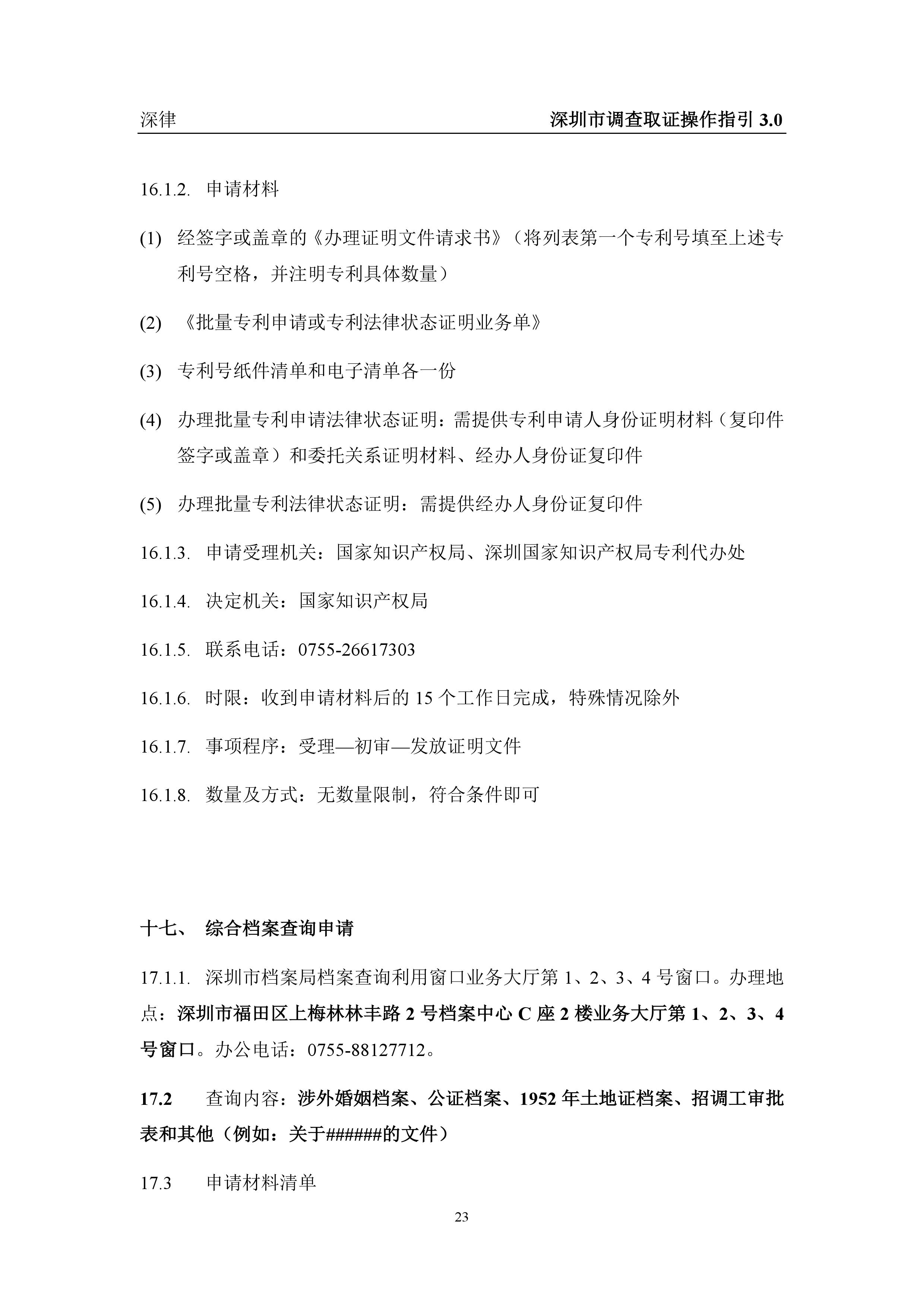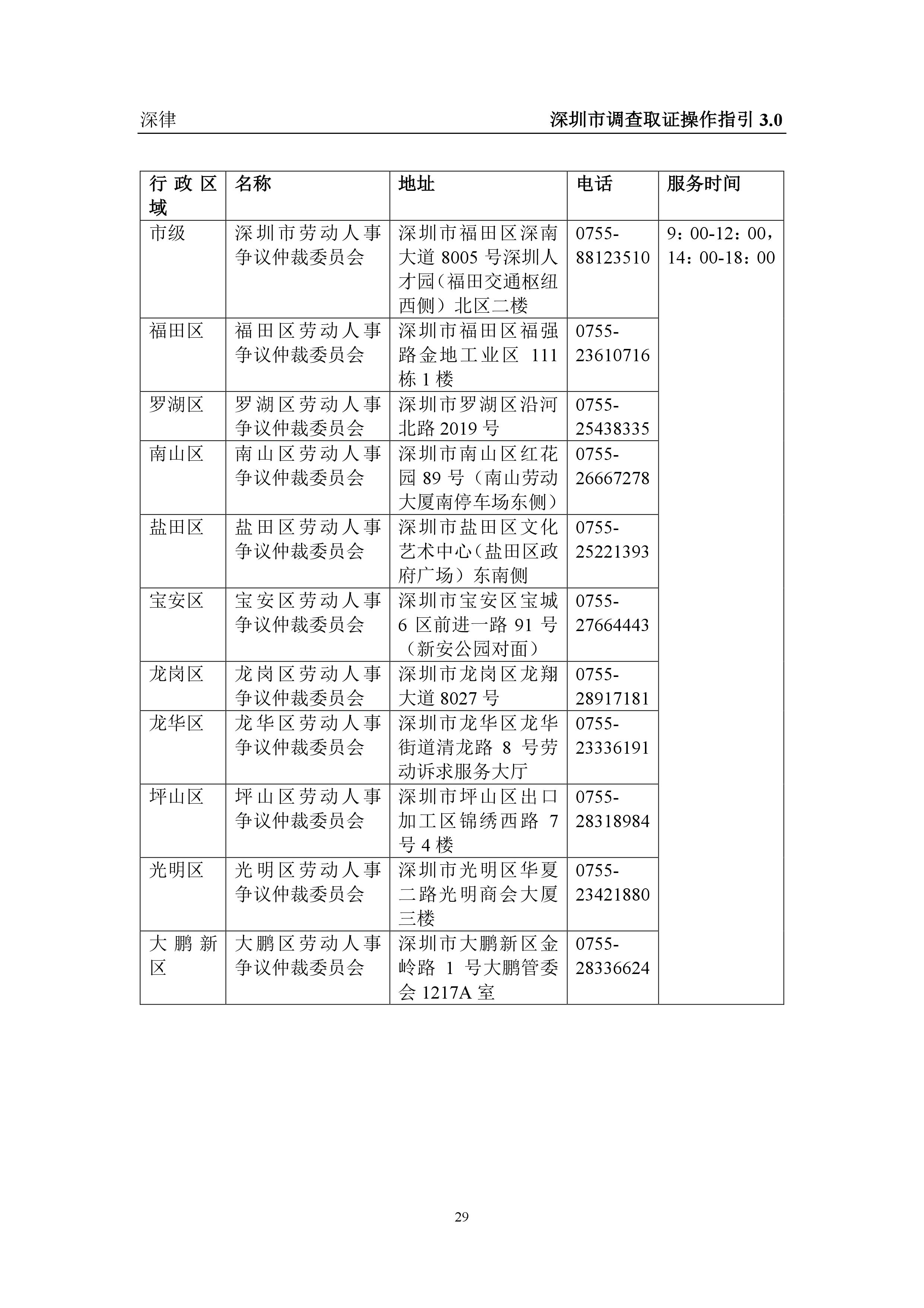 深圳市各类调查取证操作指引汇总(2019.3.1)