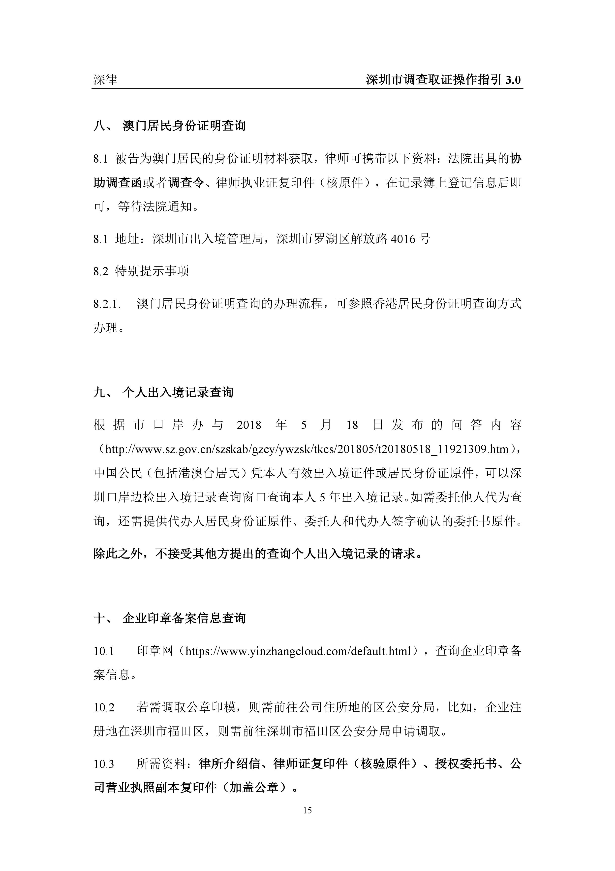 深圳市各类调查取证操作指引汇总(2019.3.1) | 法律笔记