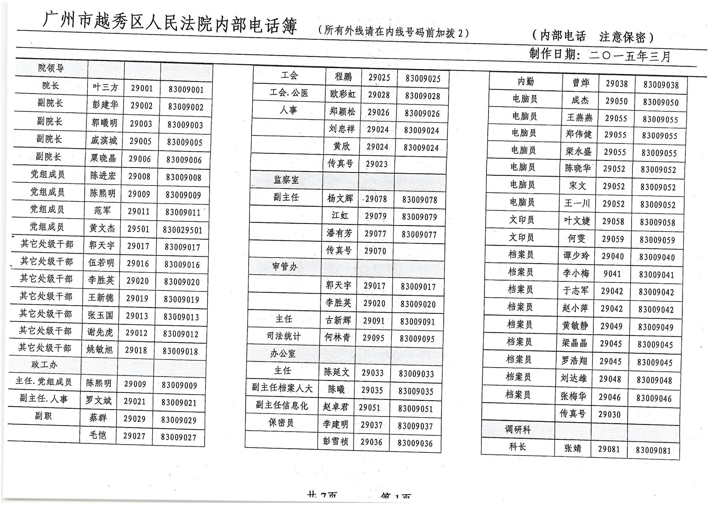 广州越秀法院内部电话簿