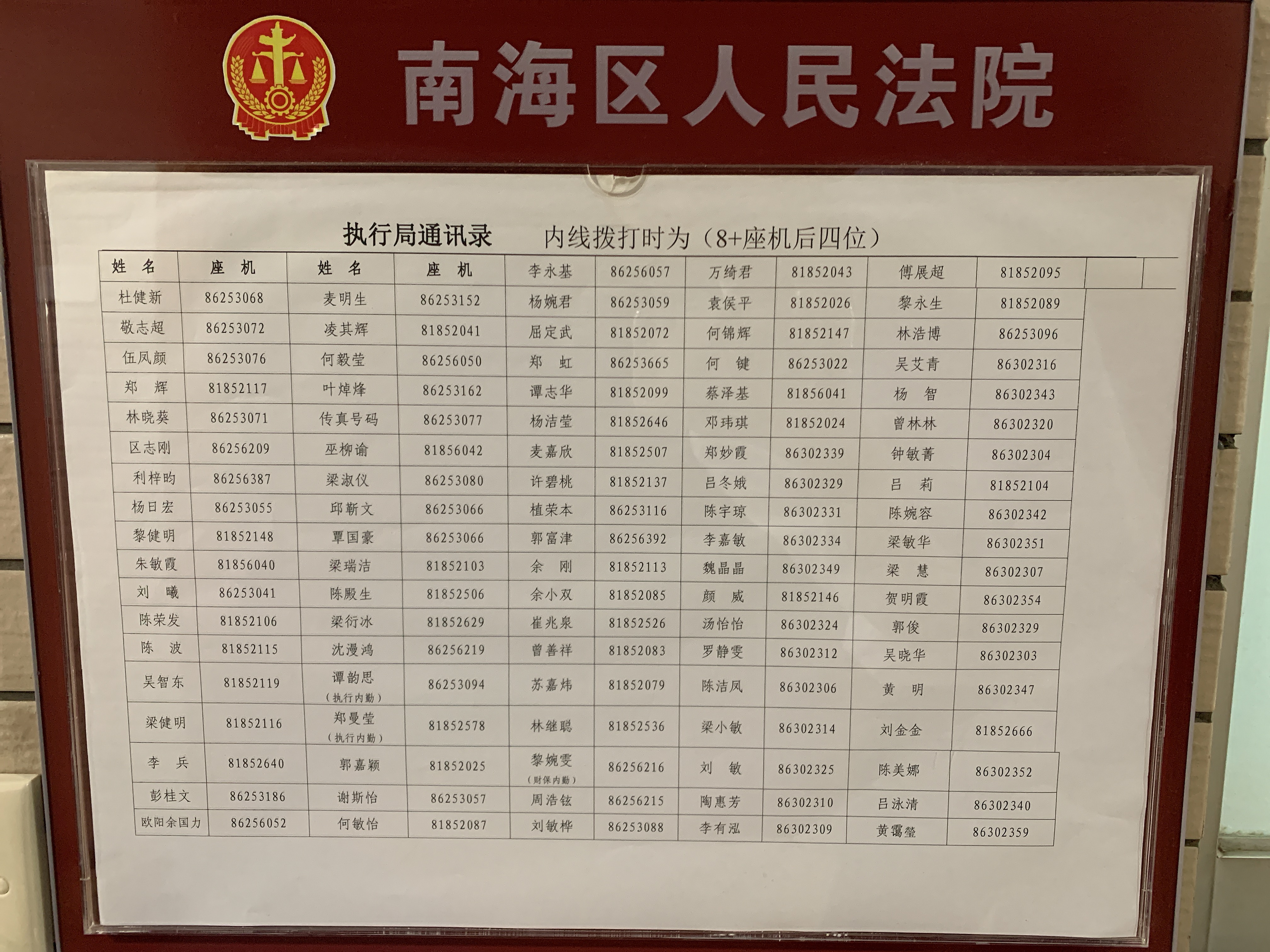 佛山市南海区人民法院执行局通讯录 | 法律笔记