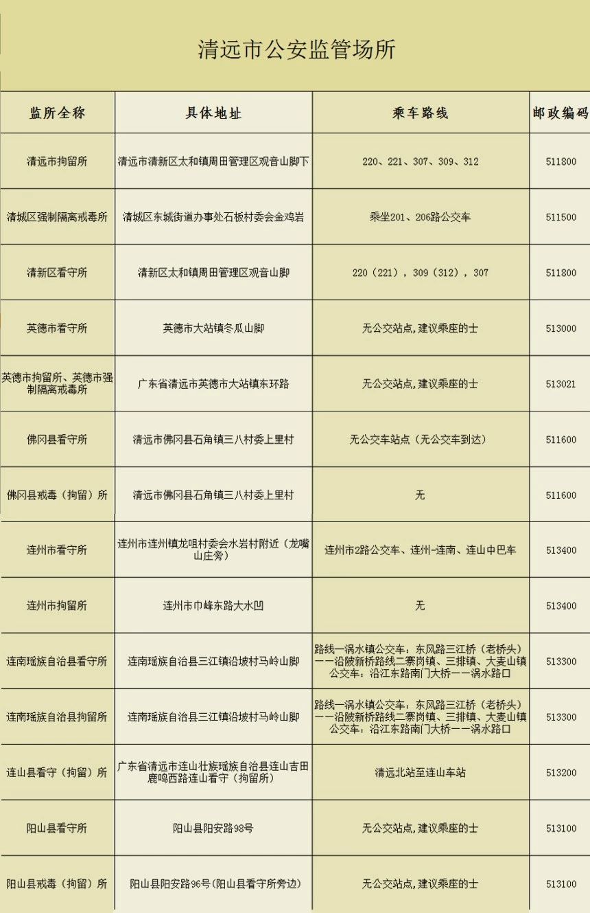 清远市看守所、拘留所、戒毒所地址 | 法律笔记