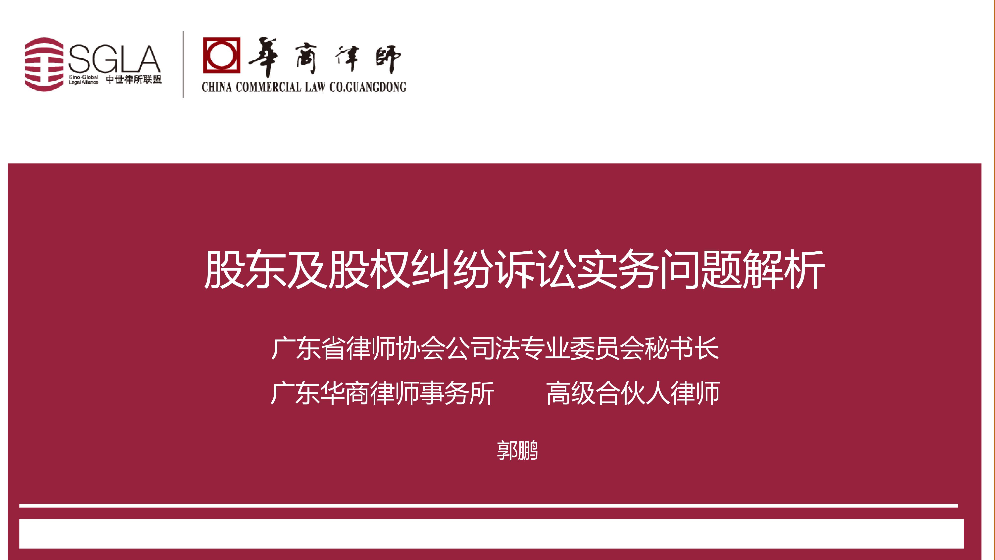 股东及股权纠纷诉讼实务问题解析(2019.09)
