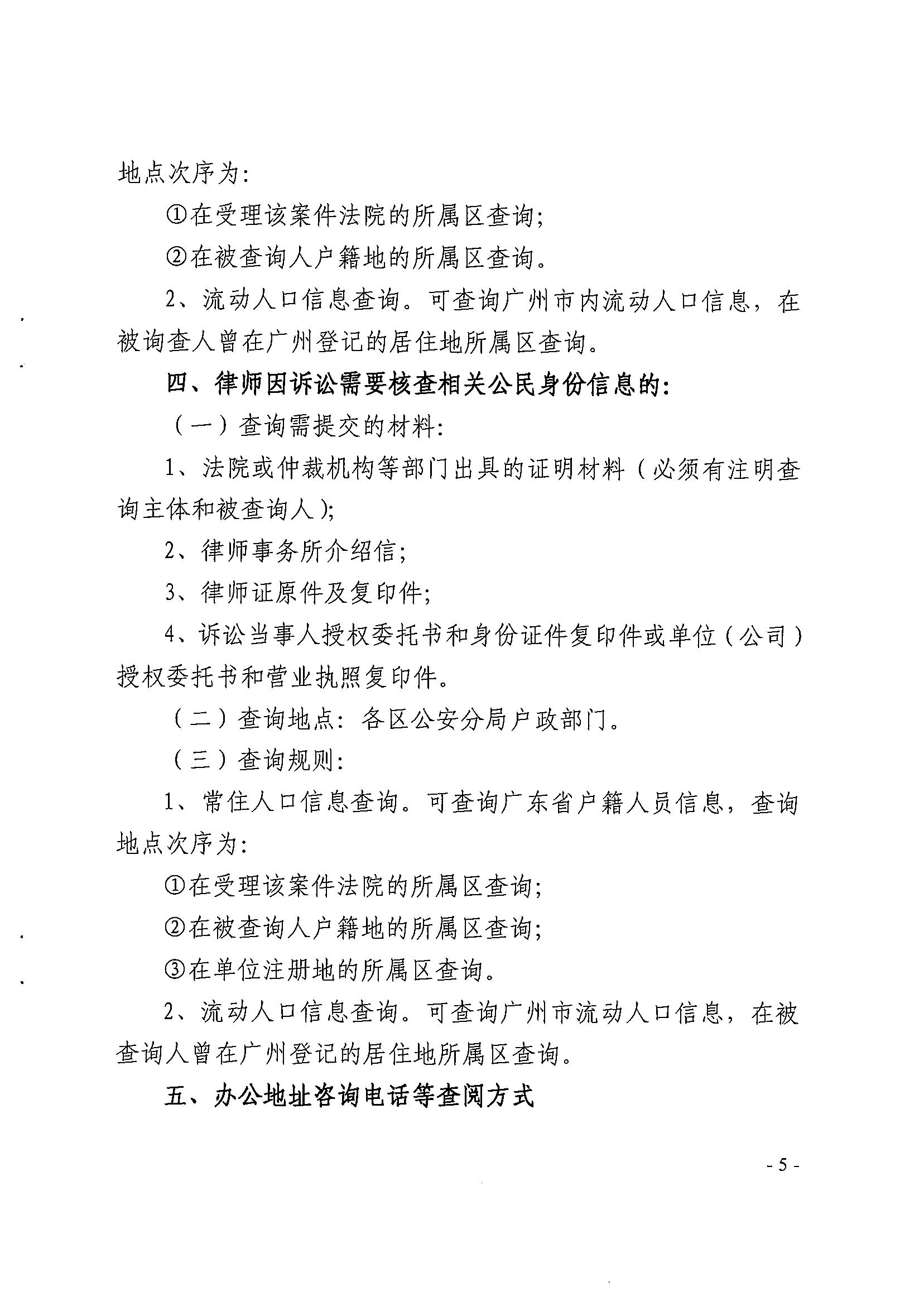A-A+广州市公安局关于开展人口信息查询工作的告知函 2017年01月06日 办案经验 暂无评论广州市人口信息查询地址(各综合办证厅地址、咨询电话和办公时间) 广州市人口信息查询地址:(各综合办证厅地址、咨询电话和办公时间)