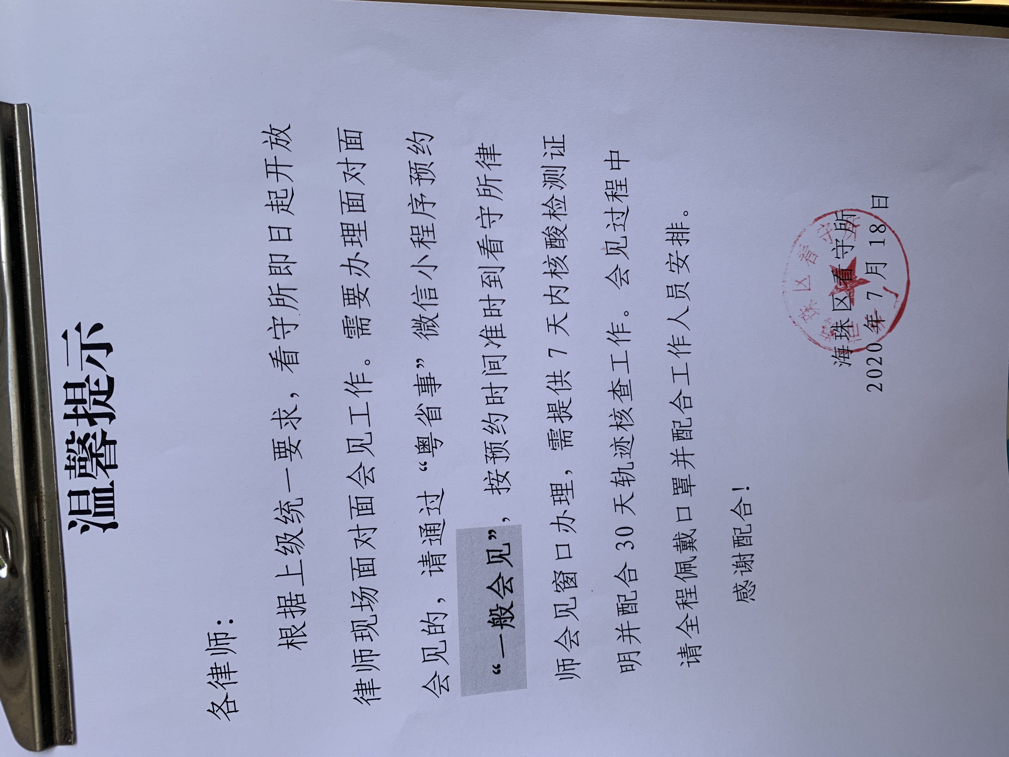 广州市海珠区开放面对面律师会见的温馨提示 | 法律笔记