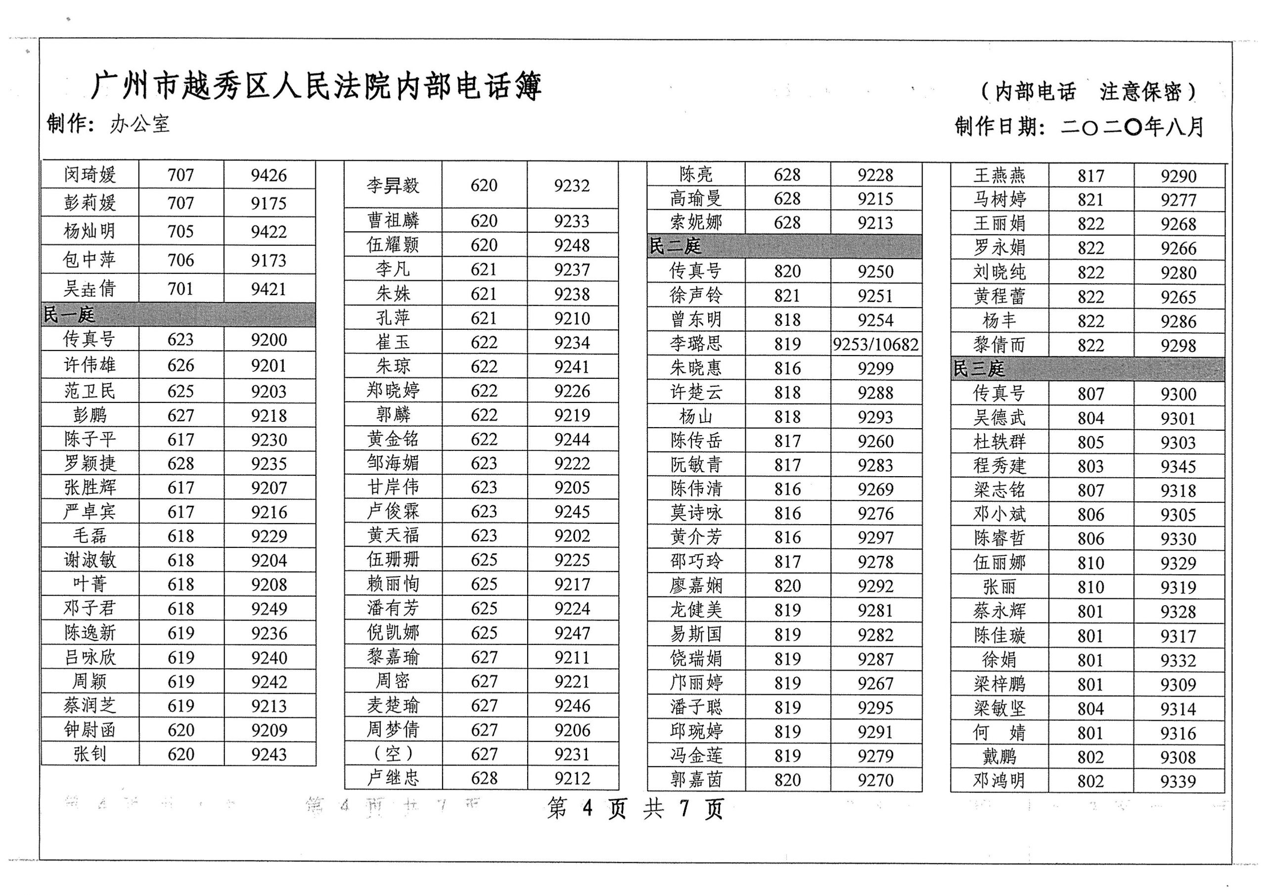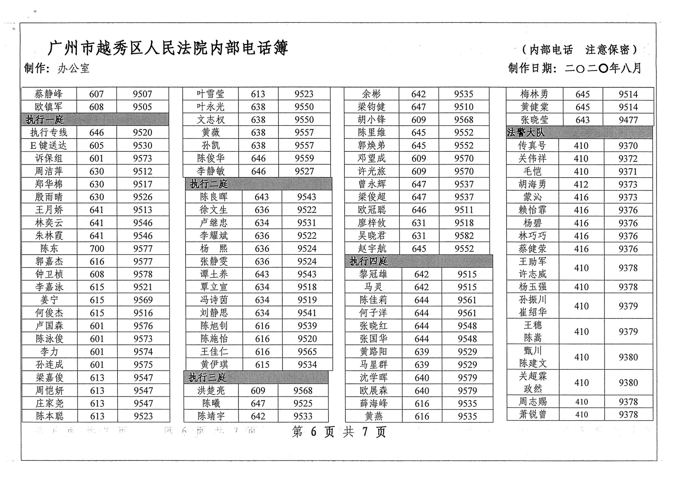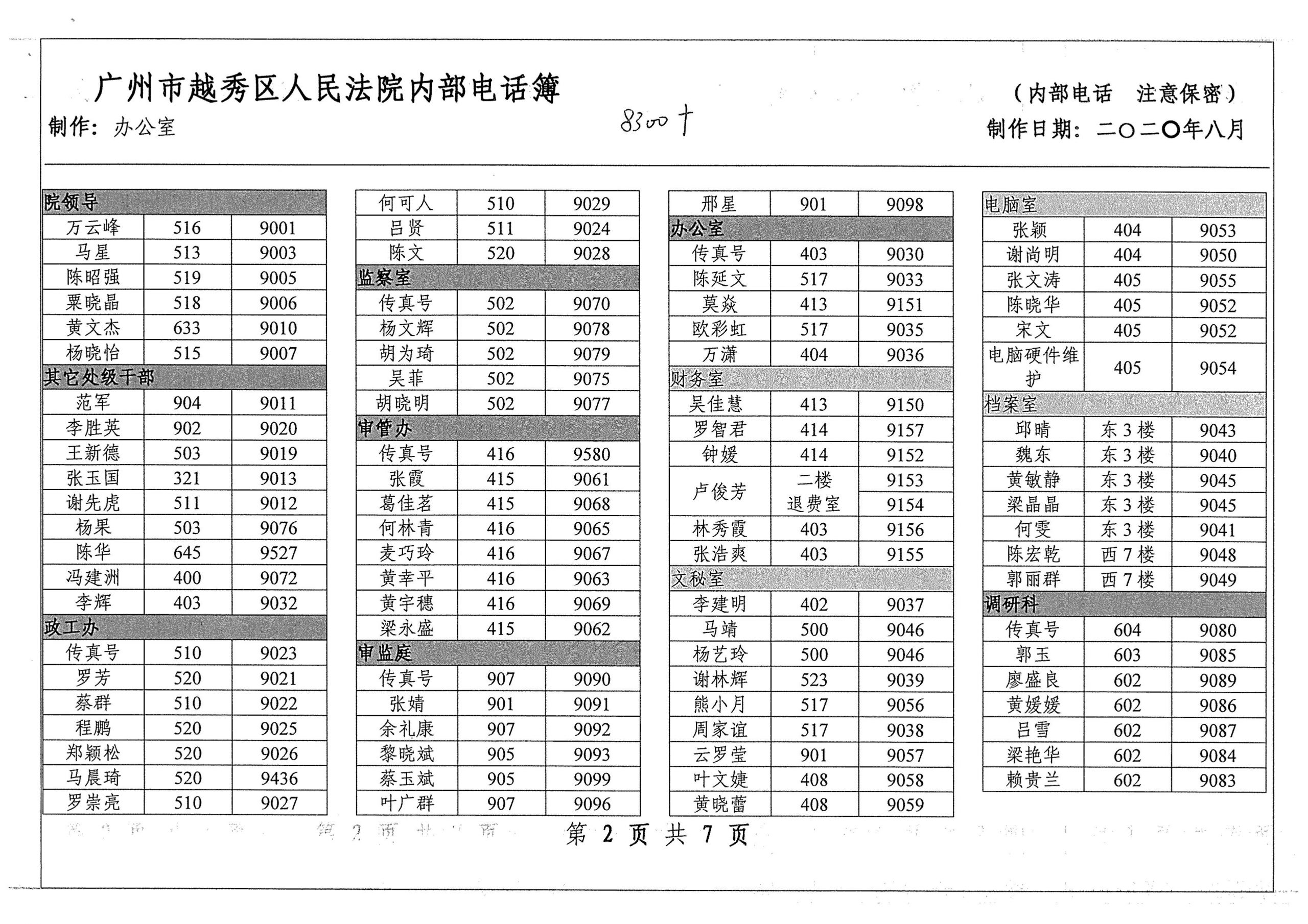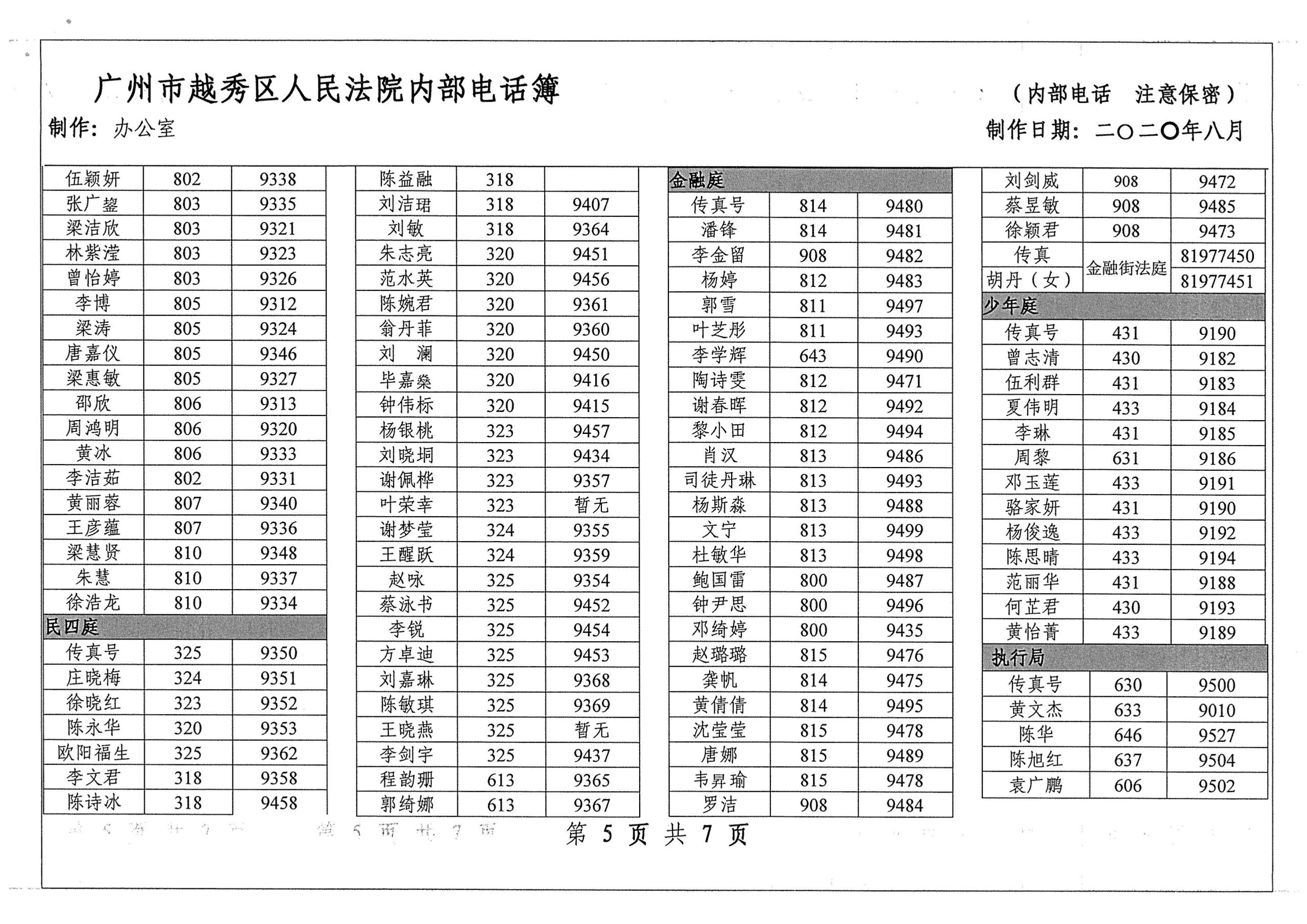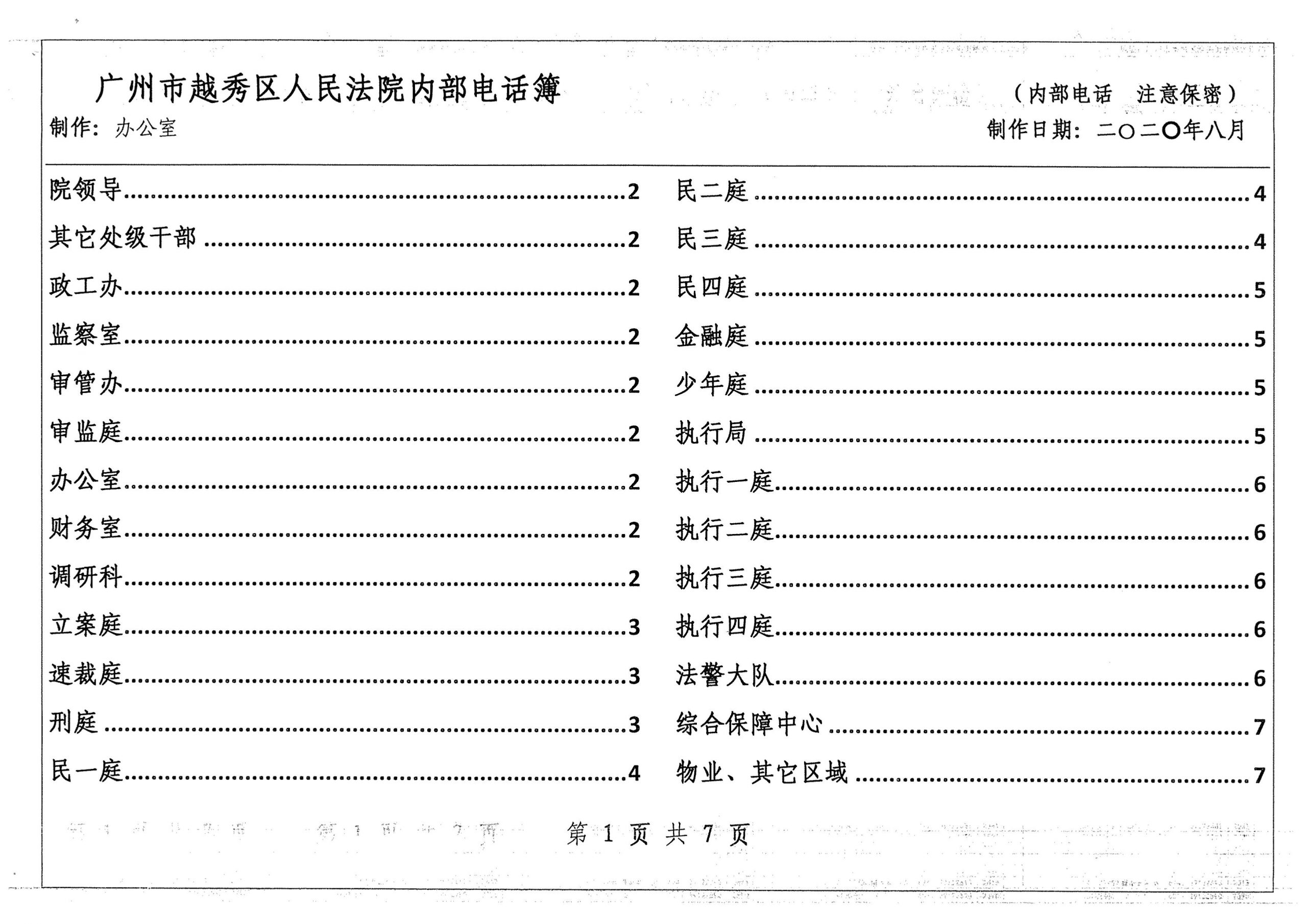 广州市越秀区人民法院通讯录(2020.08) | 法律笔记