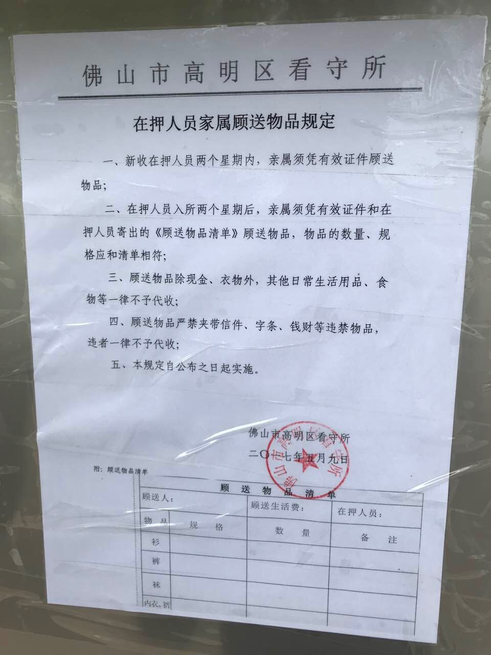 佛山市高明区看守所在押人员家属顾送物品规定 | 法律笔记