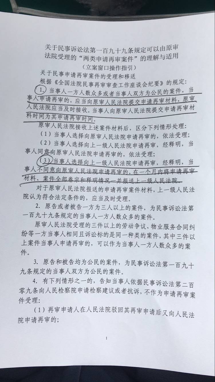 广东省高院关于由原审法院受理的“两类申请再审案件”的理解与适用“(立案窗口操作指引)