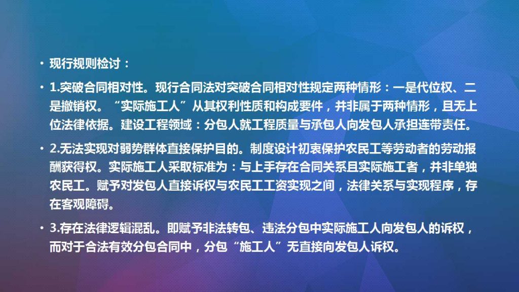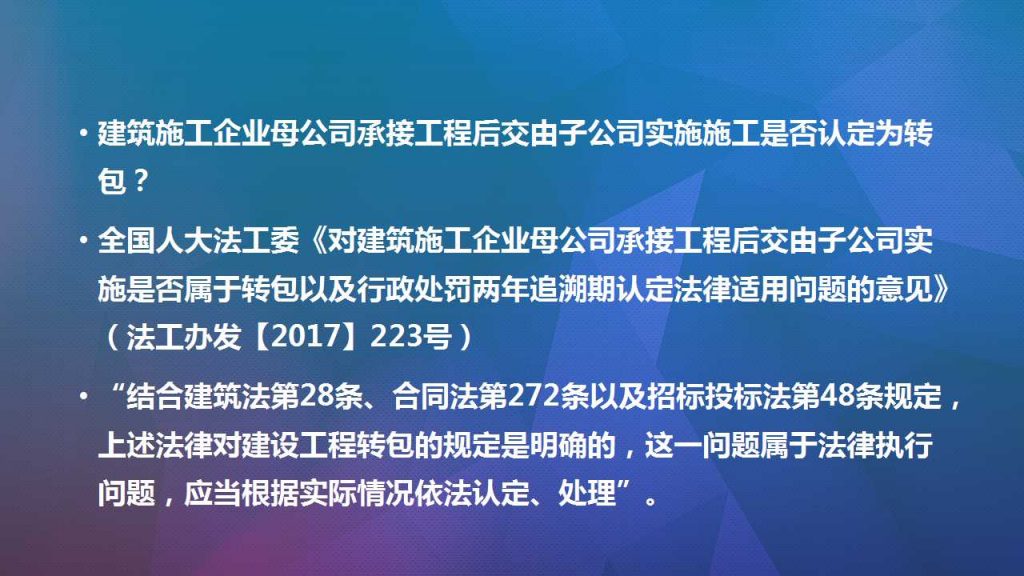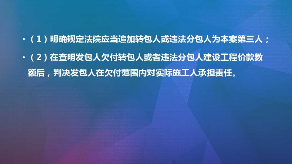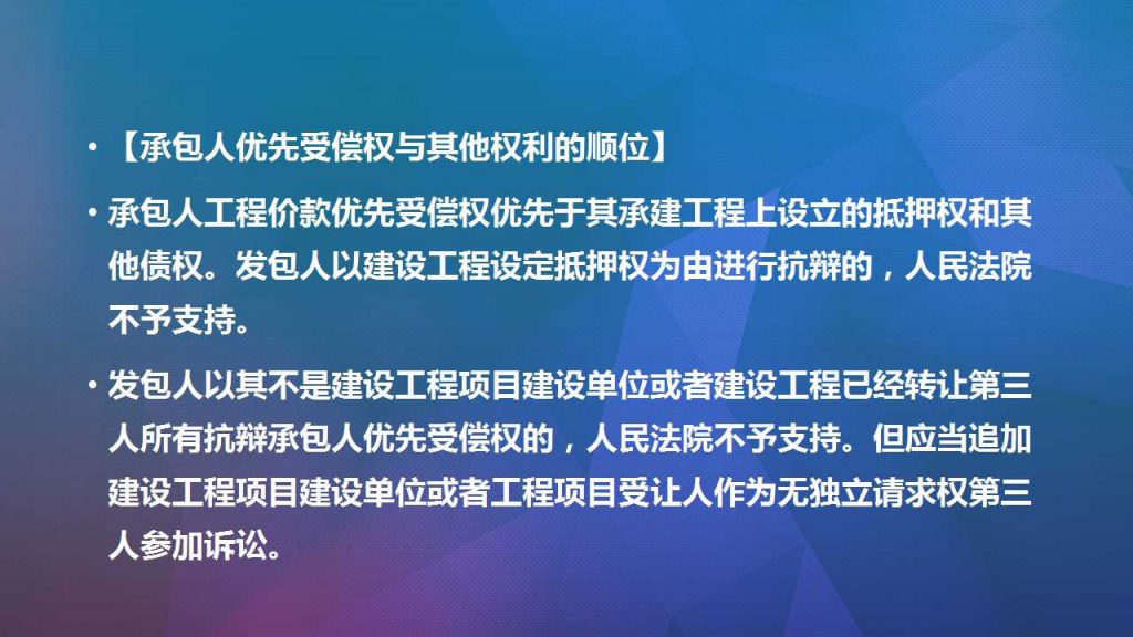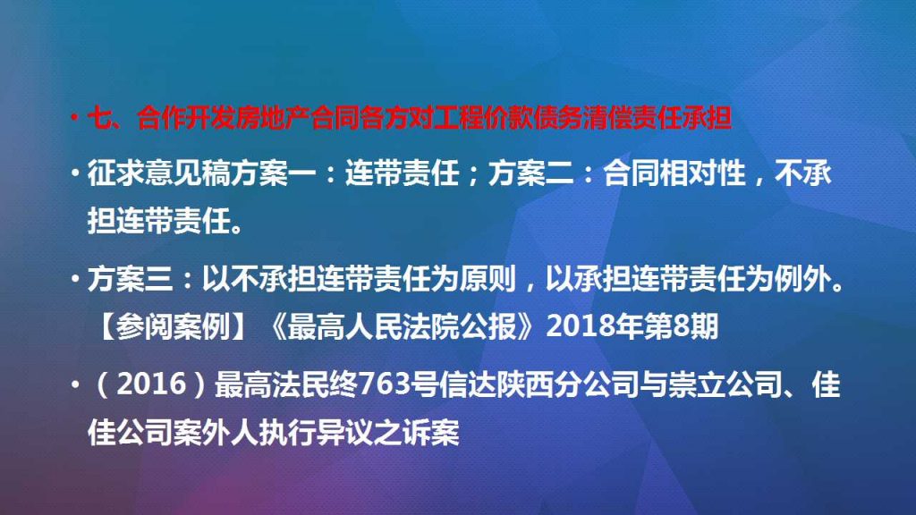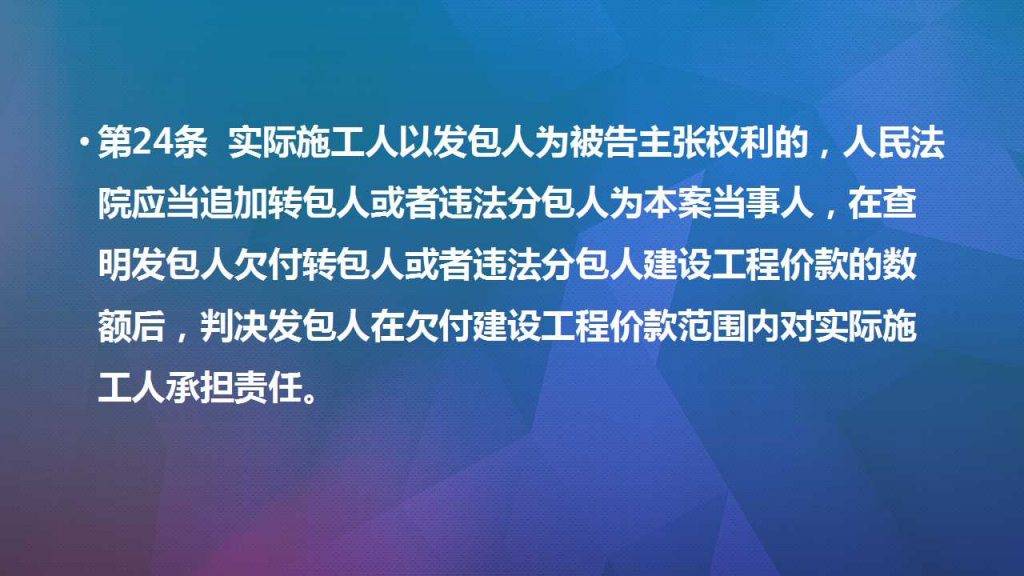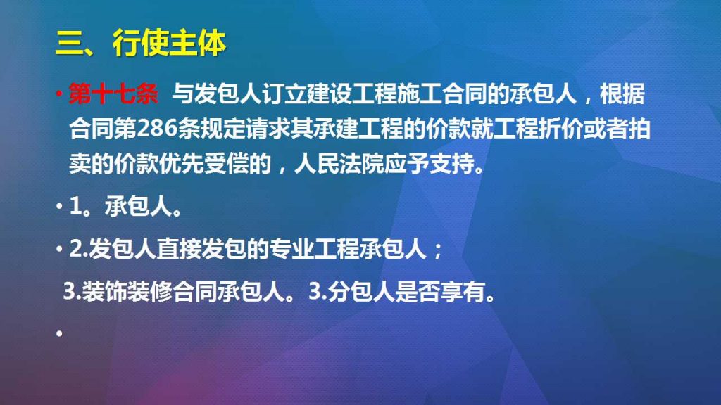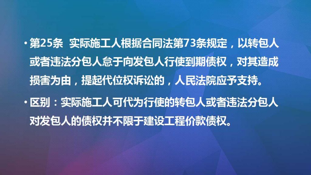 A-A+建设工程施工合同纠纷疑难问题研究——“司法解释二”解读 2019年03月06日 讲座分享 暂无评论 讲座内容《最高人民法院关于审理建设工程施工合同纠纷案件适用法律若干问题的解释(二)》起草的背景、含义、注意事项。主讲嘉宾李琪。原最高人民法院民一庭审判员、高级法官,博士研究生。担任审判长或承办大量案件。曾获全国法院优秀裁判文书一等奖,多篇文书刊登于最高人民法院公报。执笔起草消费民事公益诉讼司法解释,参与起草矿业权司法解释;建设工程司法解释二主要起草人之一。参与撰写物权法,民诉法司法解释等理解与适用等参考用书。查看文章