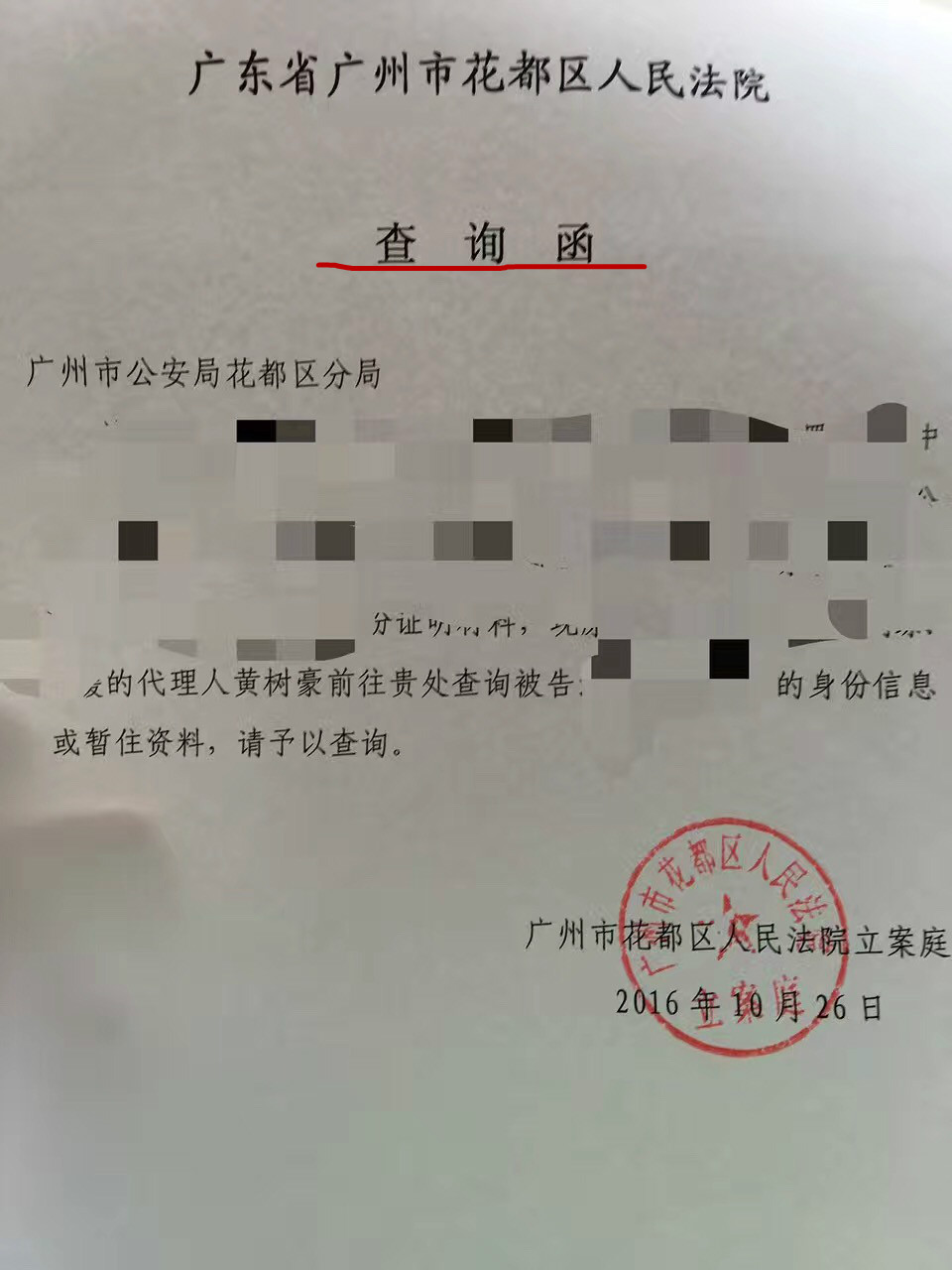 广州市花都区查询驾驶人信息、人口信息经验总结 2017年1月1日后,广州市特种证件中心不再对外提供查询服务,由广州市各区综合办证中心进行查询人口信息。详见《广州市人口信息查询须知》。 到花都法院立案,需要查询被告信息,去花都交警大队查,告知法院开具的补正材料告知书不行,查询“人口信息”应该改为查询“驾驶人信息”。 跑花都公安局综合办证中心(建设北路158号),告知法院开具的“补正材料告知书”不行,文件标题要开“查询函”。跑回法院修改再回办... 2016年11月06日 办案经验 暂无评论 喜欢 2 阅读全文